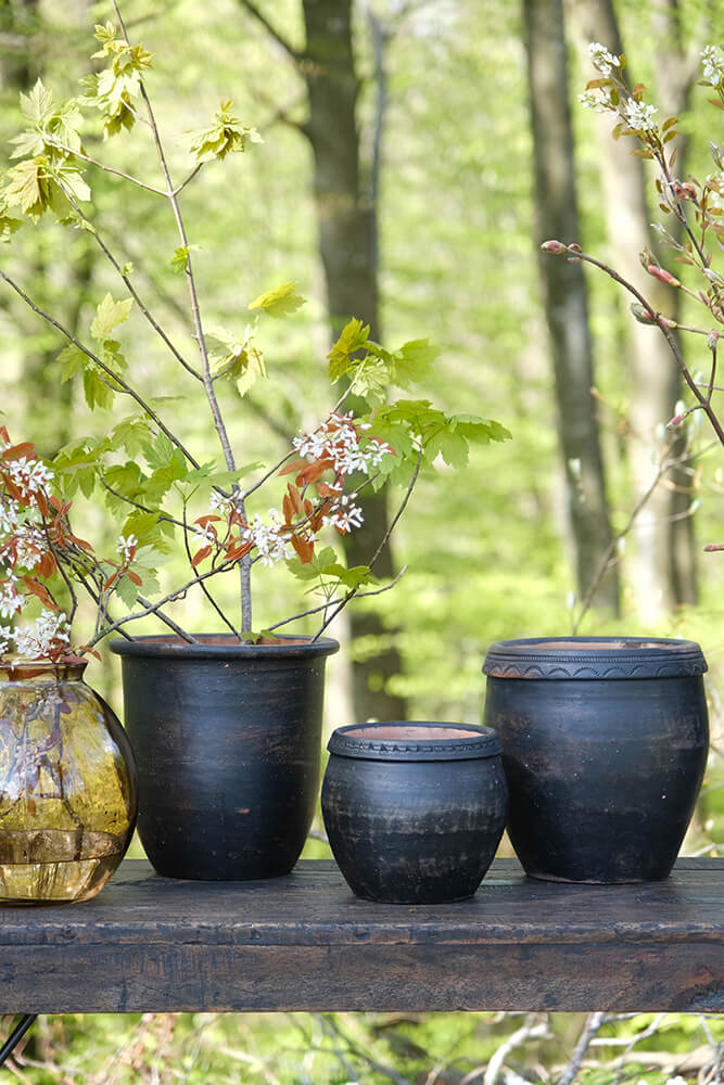 Pflanzen geben Ihrem Zuhause neues Leben und schaffen eine angenehme Atmosphäre. Dieser Tontopf hat eine schöne dunkle Patina und passt gut zu den meisten Wohnungen und bringt jede Blume oder Pflanze ins Zentrum. Der Topf ist nicht wasserdicht, kann aber mit einem Glas-/Kunststoffeinsatz für Pflanzen verwendet werden.