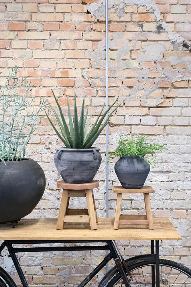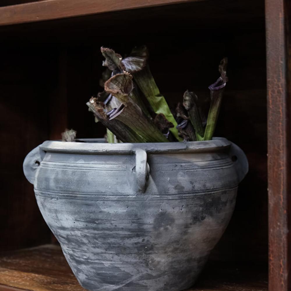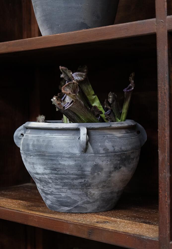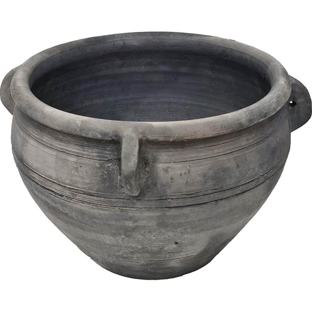 Dieser robuste Tontopf ist ein echtes Handwerksstück mit seinem rohen und authentischen Ausdruck. Die Rillen und praktischen Griffe machen ihn sowohl funktional als auch dekorativ. Perfekt für üppige grüne Pflanzen, zur Schaffung von Atmosphäre auf der Terrasse oder als rustikales Detail in Ihrer Einrichtung. Die natürlichen Farbtöne und die handgefertigte Patina des Topfes verleihen einen charmanten und rustikalen Touch, der sowohl in moderne als auch traditionelle Umgebungen passt. Beachten Sie, dass der Topf nicht wasserdicht oder frostbeständig ist.