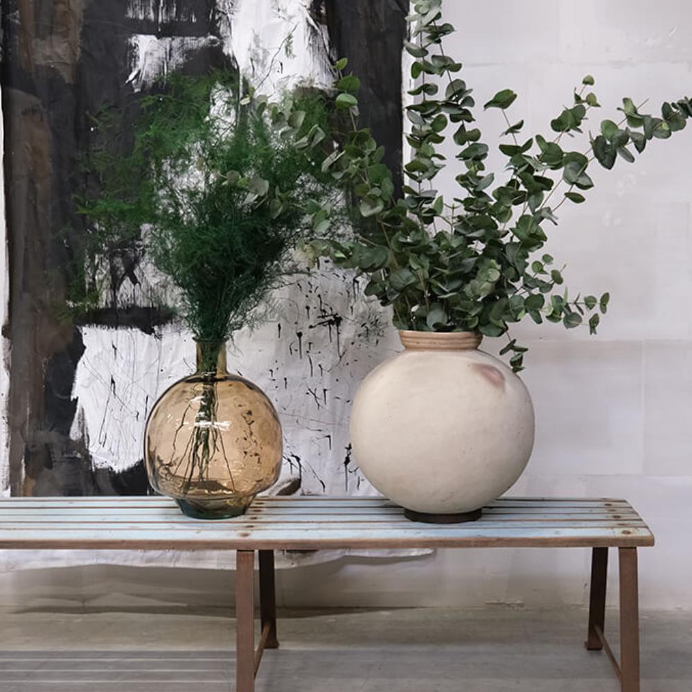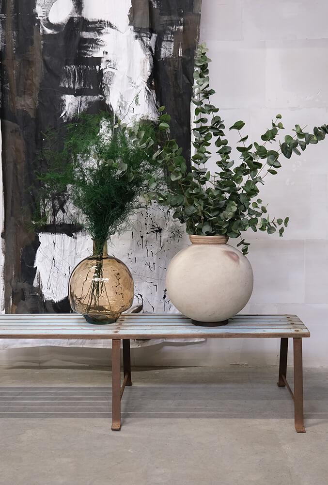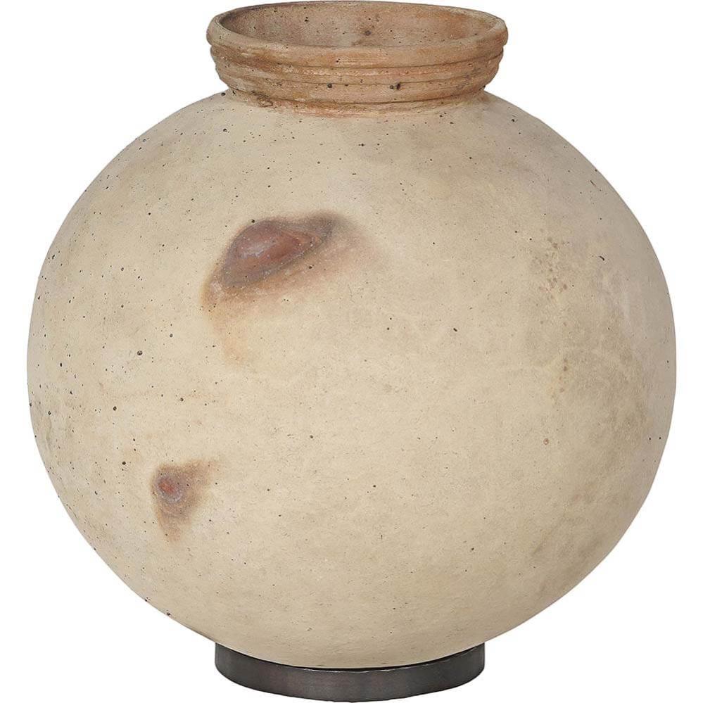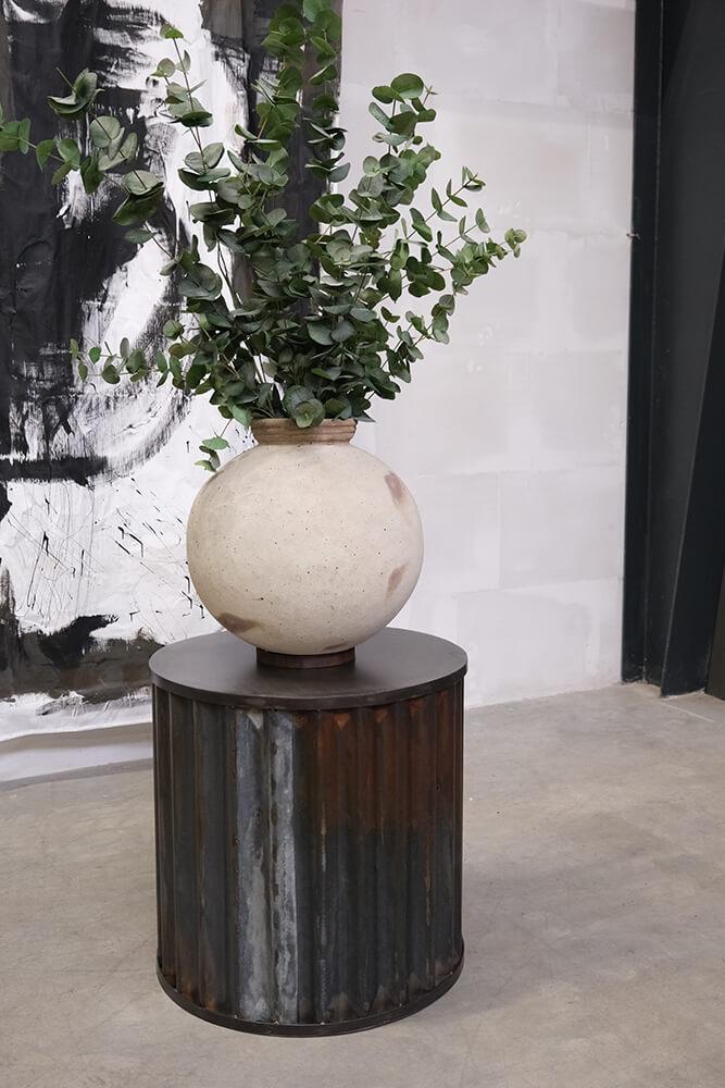 Dies ist der größte Dali-Tontopf mit einer Höhe von 44 cm. Die raue, helle Oberfläche und die schlichte Form verleihen ihm einen organischen Ausdruck, während der Eisenring am Boden für Stabilität sorgt. Verwenden Sie ihn als dekoratives Element, zum Beispiel mit getrockneten Blumen. Der Tontopf ist in zwei kleineren Größen erhältlich – bitte beachten Sie, dass er nicht wasserdicht ist.