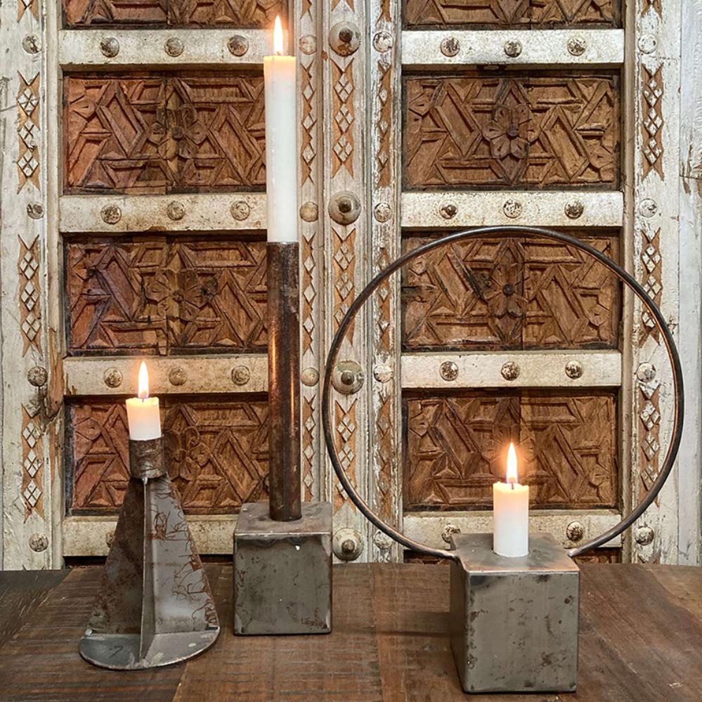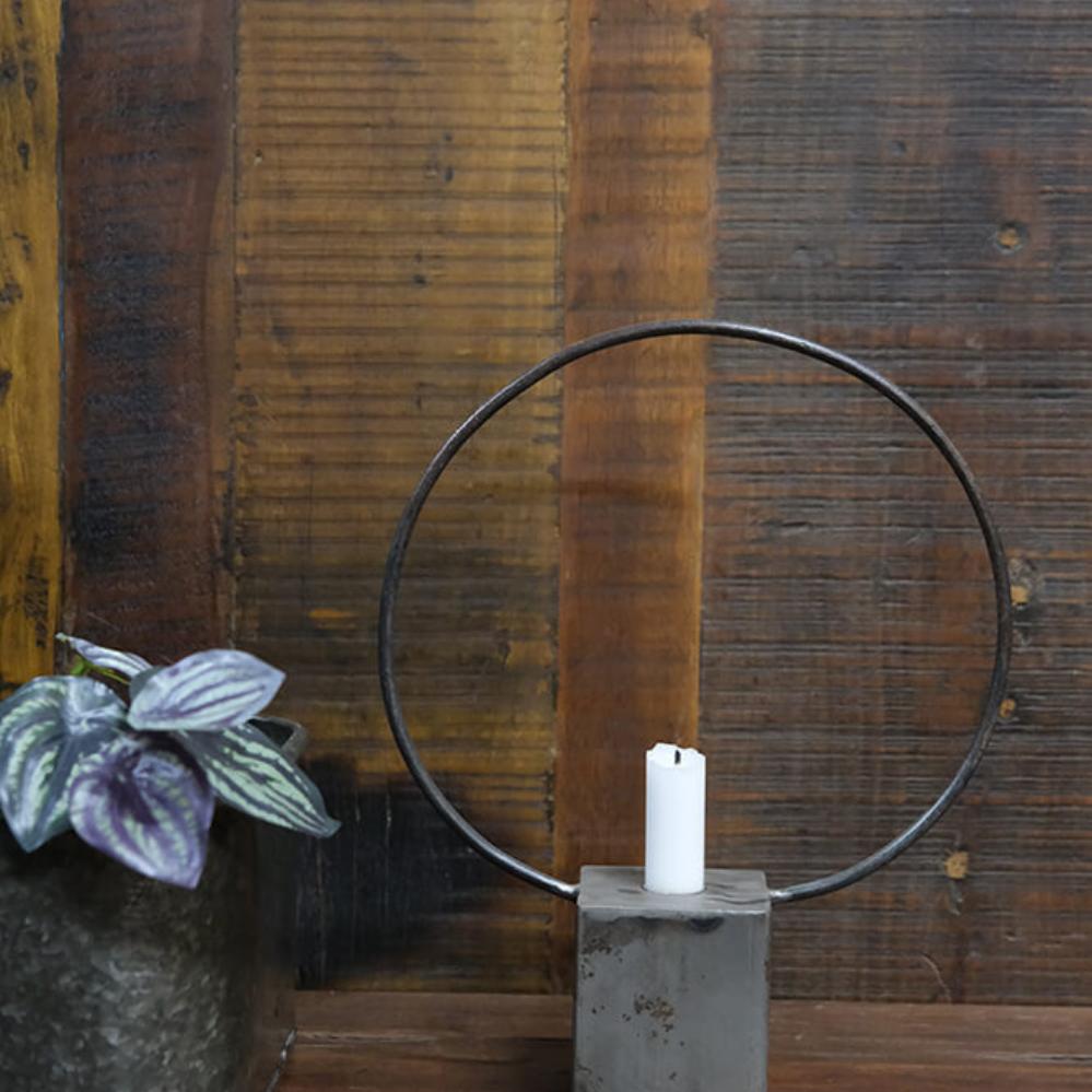 Dieser zirkulare, rohe Kerzenhalter ist eine gute Wahl für industrielles, modernes oder minimalistisches Dekor. Der Kerzenhalter kann an Stellen angebracht werden, an denen Sie klare Linien wünschen wie z.B. auf Tischen, Fensterrahmen und Regalen, oder er kann an einem Haken in der Decke aufgehängt werden.