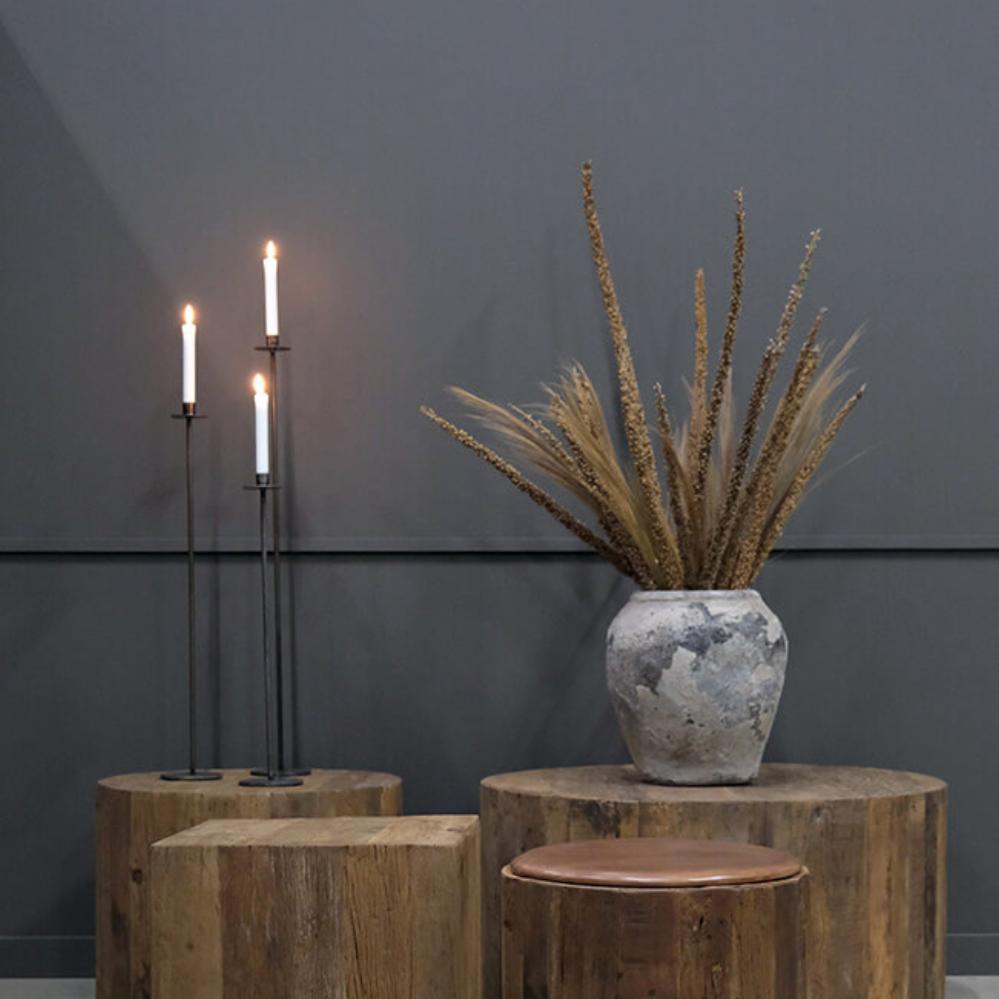 Gemütlichkeit und Wärme sind mit diesem hohen, schlanken Bodenkerzenhalter aus Eisen direkt zur Verfügung. Der schlichte Eisenständer sorgt für einen modernen und zeitlosen Ausdruck, der zu jedem Einrichtungsstil passt. Platzieren Sie den Kerzenständer neben Ihrem besten Loungestuhl, in der Ecke Ihres Wohnzimmers oder im Schlafzimmer, um einen warmen und einladenden Raum zu schaffen. Erstellen Sie eine ganze Gruppe von Ständern in derselben oder anderen Höhen für zusätzliche Gemütlichkeit. Erhältlich in einer kleineren und größeren Ausführung hier im Shop. Suchen Sie nach Dean.