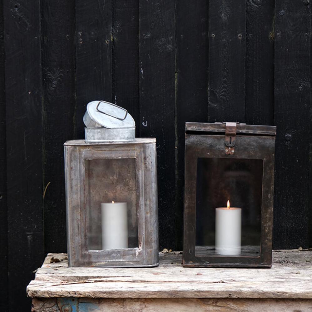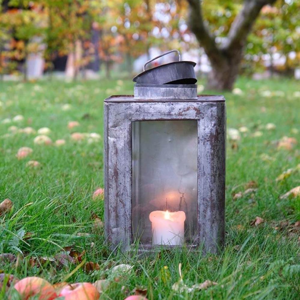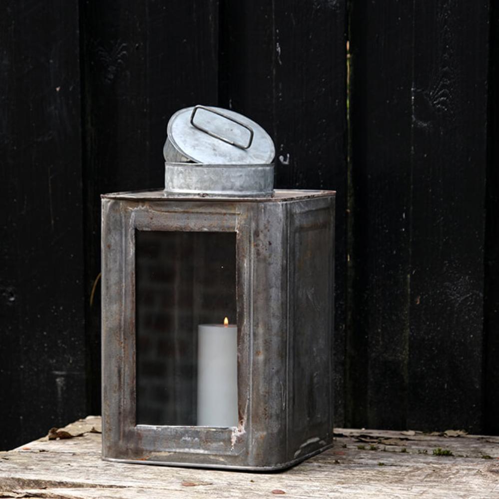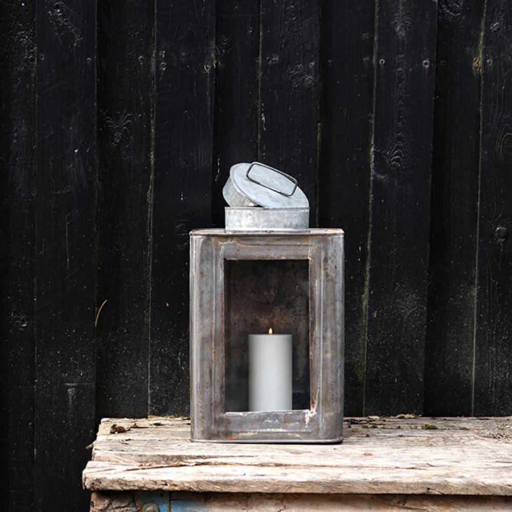Diese besondere Laterne ist überall im Dekor gemütlich. Heben Sie den kleinen Deckel oben an und setzen Sie ein Teelicht oder eine Stumpenkerze in die Laterne. Es ist eine gute Idee, den Deckel nicht vollständig zu schließen, damit Sauerstoff in die Laterne gelangt. Ein Stück Glas ist eingesetzt worden, damit Licht in den Raum oder auf die Terrasse fällt. Sie sollten sich bewusst sein, dass die Laterne rosten wird, wenn sie mit Wasser in Kontakt kommt. Sie können diese Laterne auchals eine kleine Glasvitrine verwenden, wenn Sie einige Ihrer kleinen Nippsachen ausstellen möchten. Die rustikale und unvollkommene Laterne wird sowohl im Privathaushalt als auch im Café und im Restaurant großartig aussehen.