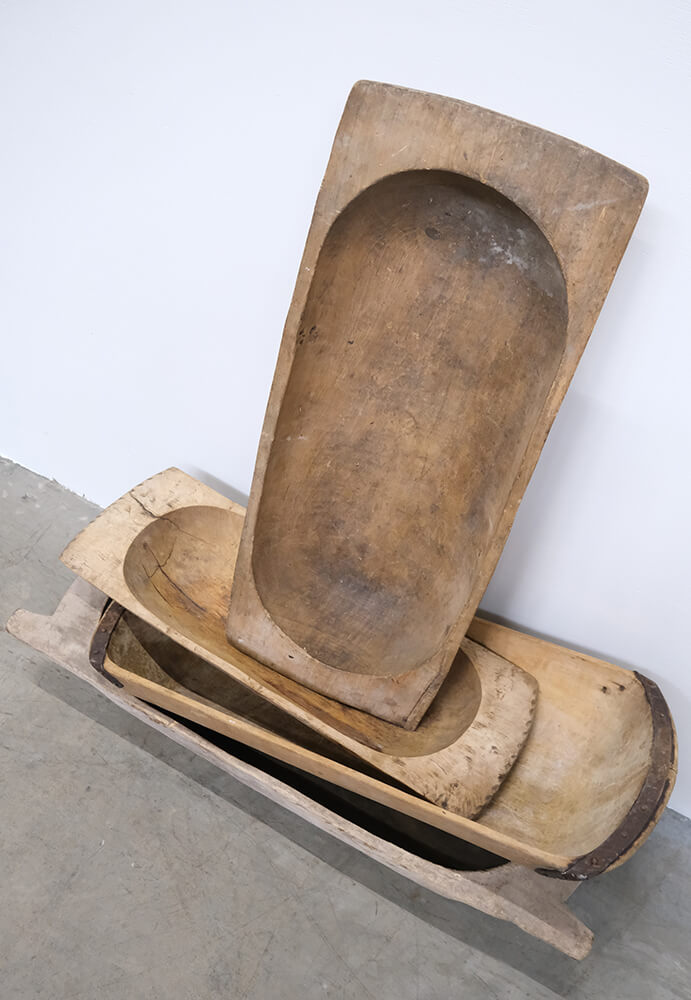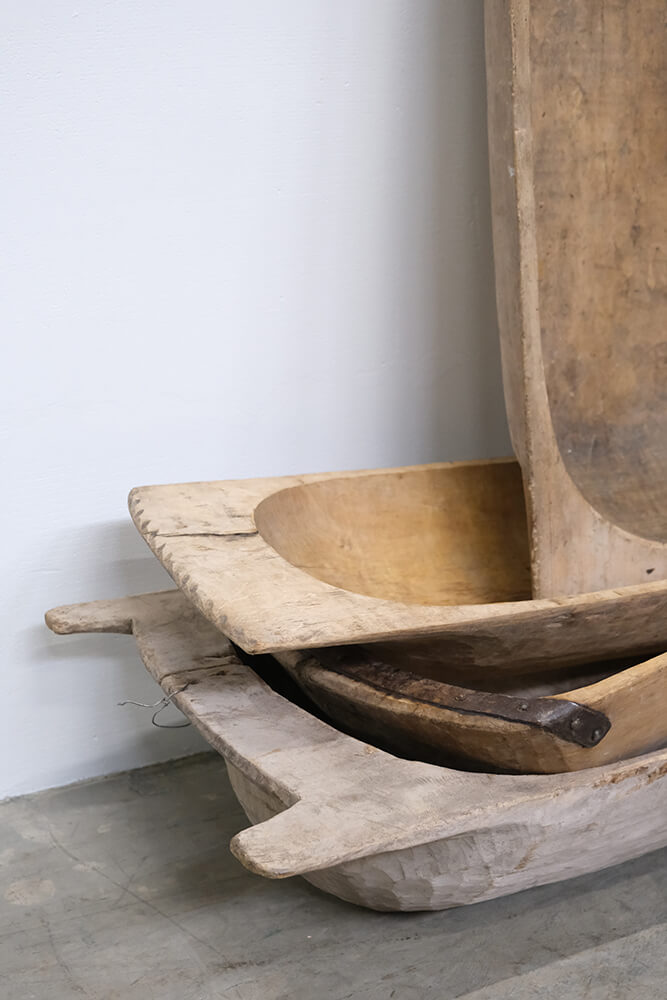 Diese schönen alten länglichen Teigschalen stammen aus der DDR und wurden früher zum Brotbacken verwendet. Alternativ hat der Metzger diese Schalen auch zum Transportieren von Fleisch verwendet. Verwenden Sie die alten Schalen in Ihrer Einrichtung für Blumen und Stumpenkerzen, Garn oder Zeitschriften. Bitte zur Kenntnis nehmen, dass alle Teigschalen einzigartig sind und sich in der Farbe, Größe und Ausführung unterscheiden.