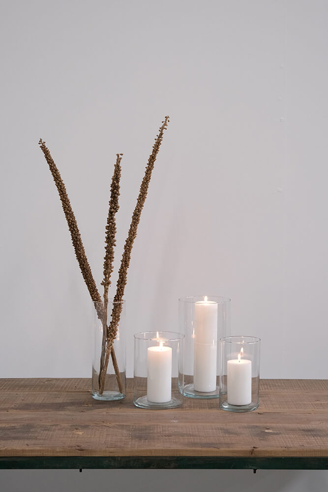 Diese schlichte und zeitlose Zylinderglasvase ist ein Must-have für jede Einrichtung. Mit ihrem klaren, zylindrischen Design schafft die Vase einen ruhigen und modernen Ausdruck, der perfekt zu minimalistischen Wohnstilen, nordischem Design und rustikalen Umgebungen passt. Die klare Glasoberfläche hebt den Inhalt auf schöne Weise hervor – egal, ob Sie die Vase mit frischen Blumen, getrockneten Zweigen, Kerzen oder dekorativen Elementen wie Zapfen, Kieselsteinen oder Sand füllen. Gefertigt aus solidem, transparentem Glas, kann sie das ganze Jahr über verwendet werden und ist ideal für kreative Dekorationen, saisonale Arrangements, Adventskerzen oder als schlichter Blickfang auf dem Esstisch. Die Zylinderglasvase ist in mehreren Größen erhältlich, sodass Sie z.B. durch das Kombinieren verschiedener Höhen ein harmonisches und ausgewogenes Gesamtbild schaffen können. Perfekt für alle, die in ihrer Einrichtung Wert auf Flexibilität und eine klare Ästhetik legen. Sie kann außerdem als Einsatz in Töpfen verwendet werden, die nicht wasserdicht sind.