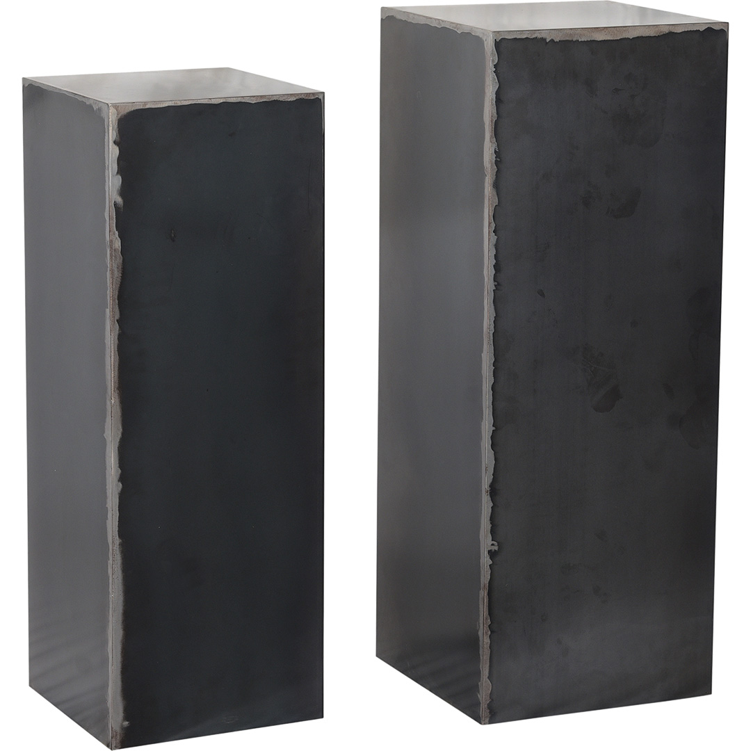 Kraftvoller und rustikaler Metallsockel aus pulverbeschichtetem Eisen. Die Podeste haben ein sehr rustikales und schlichtes Aussehen, damit sie ideal als Sockel für z.B. Pflanzen und Blumen verwendet werden können. Sie können auch eine kleine Glasvitrine, einen Stapel Bücher oder eine Kiste darauf stellen oder mit einer Vase oder einer Skulptur gestalten. Eine wirklich schöne Präsentationsmöglichkeit. Die Sockel sind hohl, sodass sie eigentlich auch als toll, rustikale Töpfe verwendet werden können. Wir empfehlen jedoch die Verwendung eines Kunststoffeinsatzes, da die Gläser sonst rosten. Die Podeste sind in 2 verschiedenen Größen hergestellt, die zusammen oder separat aufgestellt werden können. Ein Set besteht aus zwei Pflanzensäulen. Groß: 95 x 36 x 36 cm Klein: 85 x 30 x 30 cm