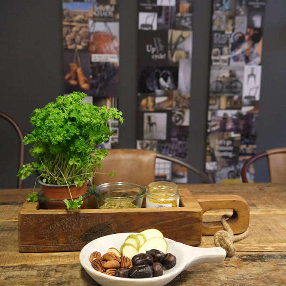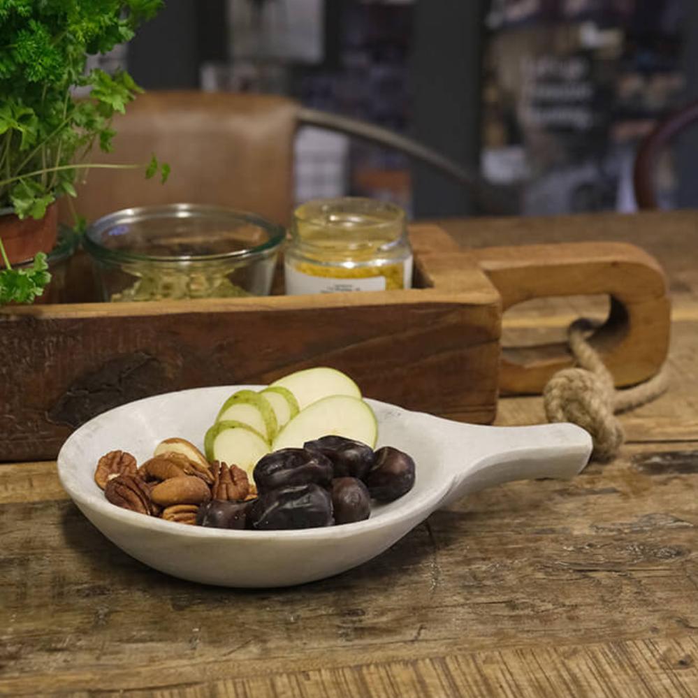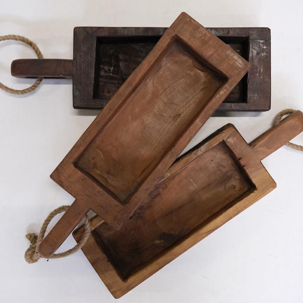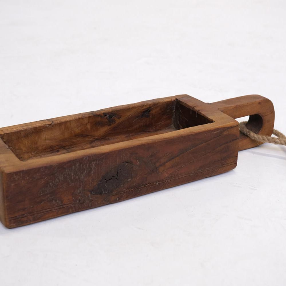 Rustikales, handgefertigtes Holztablett aus Altholz. Jede Schale zeigt den variierenden Ausdruck des Altholzes und die individuelle Note des Handwerkers. Alle Holztabletts sind mit Seilgriffen ausgestattet, so dass sie praktisch an einem Haken aufgehängt werden können. Die Holzschalen sind an sich schon attraktiv, zum Beispiel wenn sie auf Ihrem Couchtisch stehen, können aber natürlich auch zur Aufbewahrung oder als Dekoration verwendet werden.