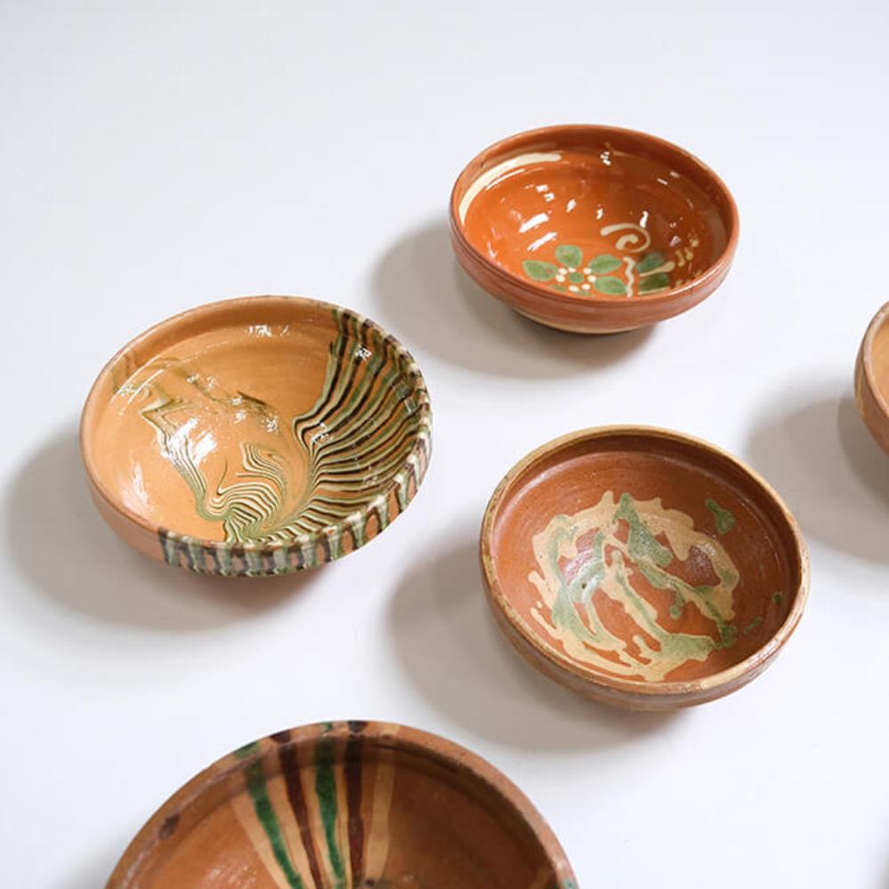 Diese charmanten Keramikschalen sind kleine Unikate. Jede Schale hat ihren ganz eigenen Ausdruck mit Variationen in der Glasur, Muster und Größe, was sie zu etwas ganz Besonderem macht. Keine gleicht der anderen, und dadurch erhalten Sie immer ein echtes Unikat. Die Schalen tragen deutliche Spuren von Handarbeit und haben einen authentischen, rustikalen Look, der Wärme und Persönlichkeit in die Einrichtung bringt. Verwenden Sie sie als dekorative Elemente in der Küche oder im Wohnzimmer, für kleine Snacks, für Schmuck, Schlüssel oder andere Kleinigkeiten, die Sie schön präsentieren möchten. Auch in einer Gruppe kommen sie wunderbar zur Geltung. Entweder als kleine Sammlung im Regal oder dekorativ gestapelt auf dem Tisch, wo ihre Unterschiede besonders gut zur Geltung kommen. Kurz gesagt: echte handgefertigte Charme für Ihr Zuhause, Café oder Geschäft, mit einem Hauch von Geschichte und Seele in jeder einzelnen Schale.