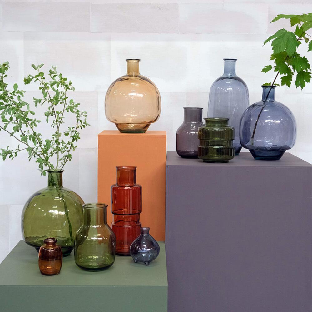 Die Joy Vase in olivgrün ist eine schöne Glasvase mit einer wunderbaren organischen Form. Die Vase ist 40 cm hoch und eignet sich daher ideal als Bodenvase. Sie können sie allein oder zusammen mit anderen Vasen als schöne spektakuläre Präsentation aufstellen. Die Glasvase kann mit den tollen Zweigen der Saison dekoriert werden. Die Vase besteht aus recyceltem Glas, daher können kleine Blasen und kleine Unregelmäßigkeiten im Glas auftreten