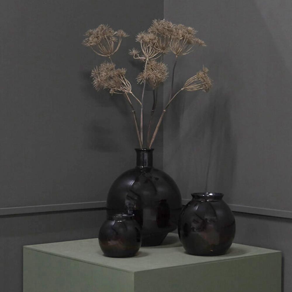 Die Joy Vase in Schokoladefarbig ist eine schöne Glasvase mit einer wunderbaren organischen Form. Die Vase ist 40 cm hoch und eignet sich daher ideal als Bodenvase. Sie können sie allein oder zusammen mit anderen Vasen als schöne spektakuläre Präsentation aufstellen. Die Glasvase kann mit den tollen Zweigen der Saison dekoriert werden. Die Vase besteht aus recyceltem Glas, daher können kleine Blasen und kleine Unregelmäßigkeiten im Glas auftreten