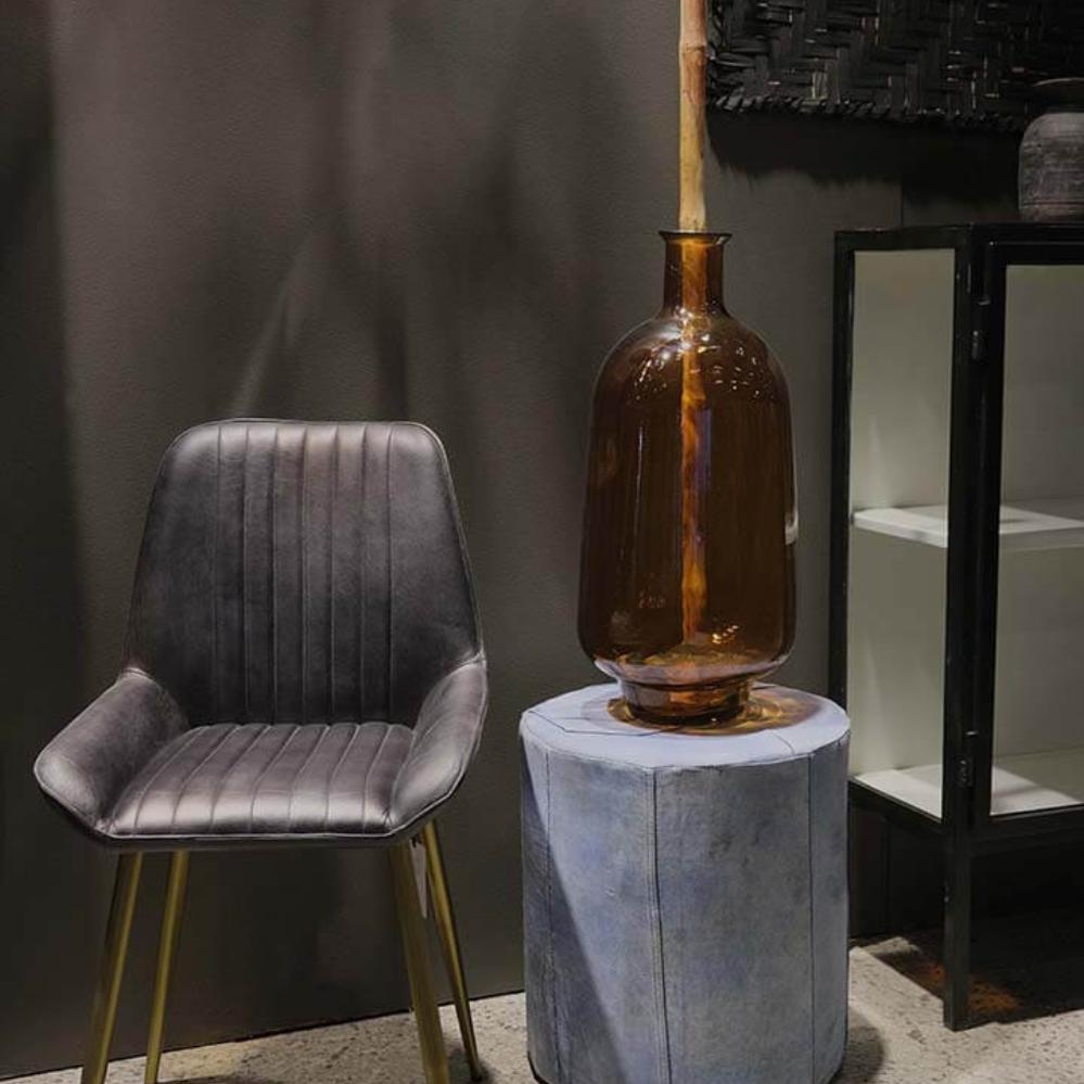 Hier finden Sie eine große schöne und flaschenförmige Bodenvase in dunklem bernsteinfarbigen Ton mit kunstvollem Balloneffekt. Die schöne Bodenvase aus Glas ist groß und schlank und kann entweder allein oder mit anderen Vasen und Gefäßen aus anderem Material kombiniert werden. Diese 60 cm große Bodenvase ist perfekt für saisonale Zweige oder Trockenblumen. Mit einer schönen Bodenvase wie diese können Sie Ihrer Einrichtung einen raffinierten und köstlichen Stil verleihen.