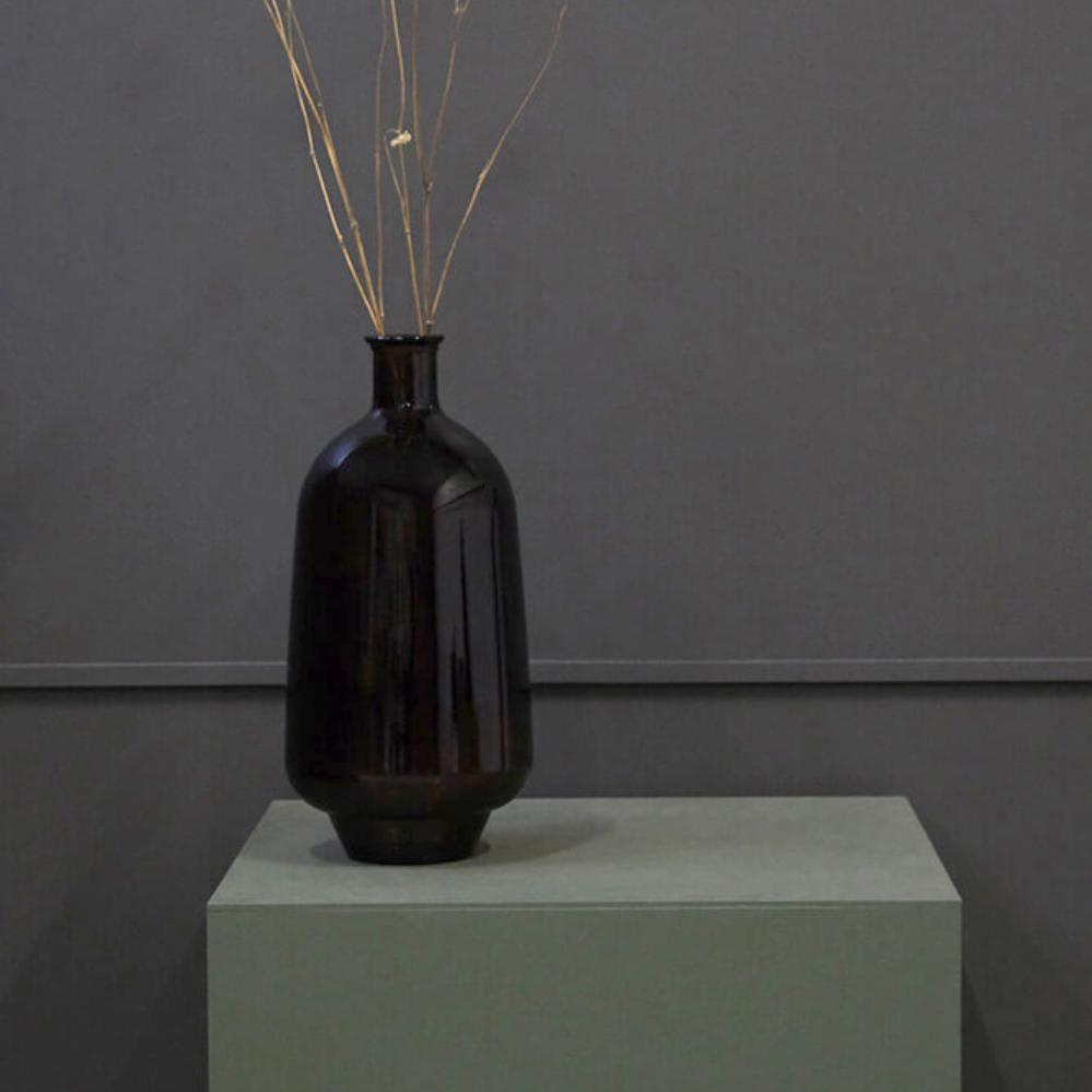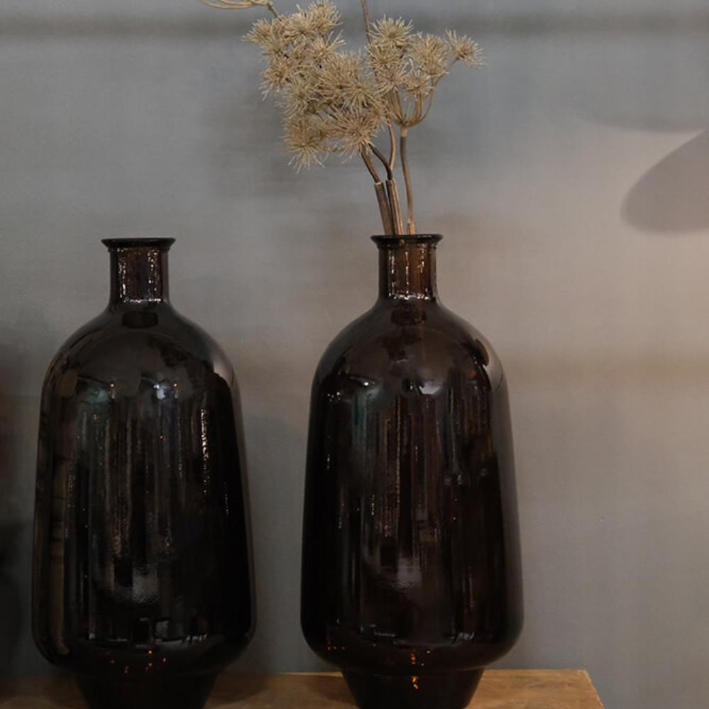 Hier finden Sie eine große schöne und flaschenförmige Bodenvase in einem Schokoladeton mit kunstvollem Balloneffekt. Die schöne Bodenvase aus Glas ist groß und schlank und kann entweder allein oder mit anderen Vasen und Gefäßen aus anderem Material kombiniert werden. Diese 60 cm große Bodenvase ist perfekt für saisonale Zweige oder Trockenblumen. Mit einer schönen Bodenvase wie diese können Sie Ihrer Einrichtung einen raffinierten und köstlichen Stil verleihen.