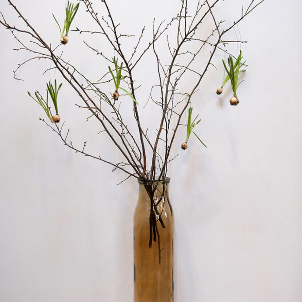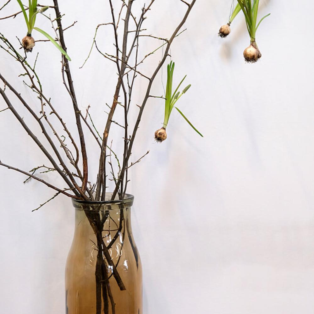 Diese hohe Bodenvase aus rauchfarbigem Recyclingglas ist an sich schon eine Schönheit. Mit ihrer schlanken und stilvollen Form bringt sie ein Element von Eleganz in jede Einrichtung. Die Höhe macht sie perfekt, um lange Stielblumen oder Zweige zur Schau zu stellen, und die schlanke Form ermöglicht es Ihnen, leicht Platz in Ihrer Einrichtung zu finden. Wählen Sie diese Vase, um Ihren Raum auf ein neues Niveau von Schönheit und Stil zu heben.