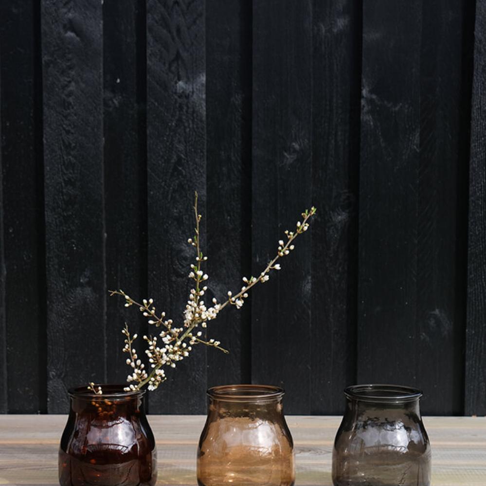 Lassen Sie die Lawrence-Vase aus recyceltem glas Harmonie und Ruhe in Ihr Zuhause bringen. Mit ihren 15 cm Höhe passt sie perfekt auf einen rustikalen Holztisch oder auf eine Fensterbank, wo sie das weiche Licht des Tages einfangen und reflektieren kann. Diese schokoladenfarbige Vase ist wie ein Stück der feinsten dunklen Schokolade, reich und voller Tiefe. Ob Sie sich dafür entscheiden, die Vase mit frischen Blumen, einer gemütlichen Stumpenkerze zu betonen oder sie alleine stehen lassen, ihr rustikaler Charme und ihre Einfachheit werden zweifellos eine Atmosphäre von Wärme und Stil in Ihre Einrichtung bringen.