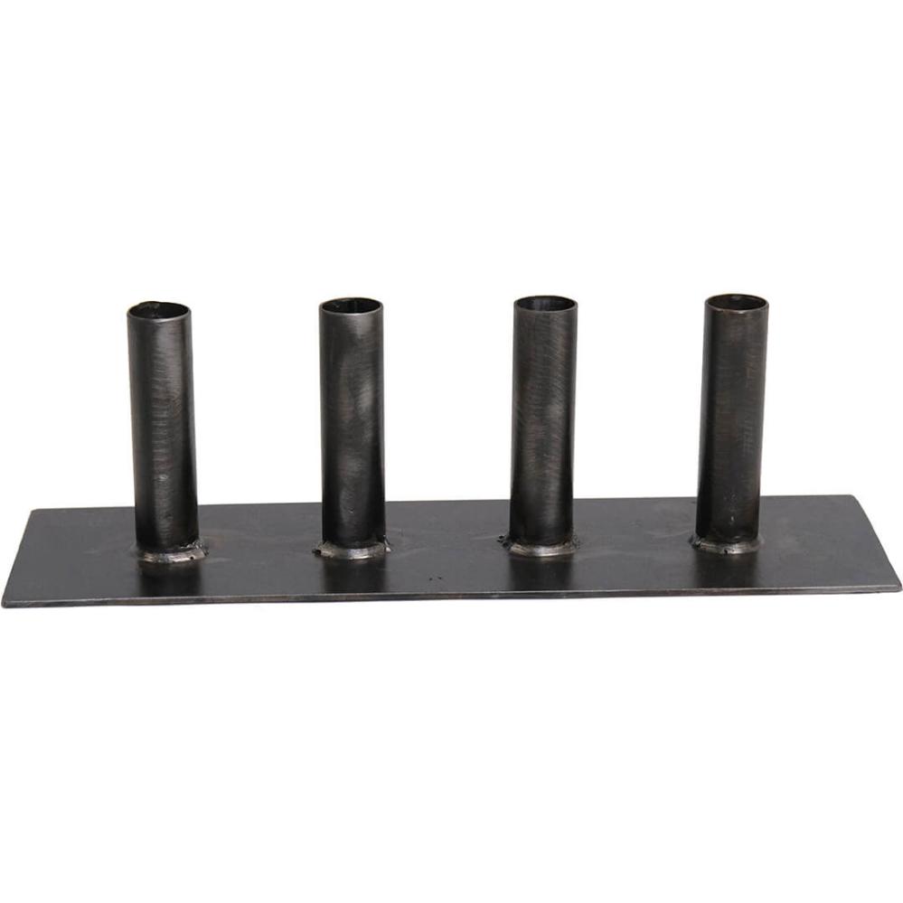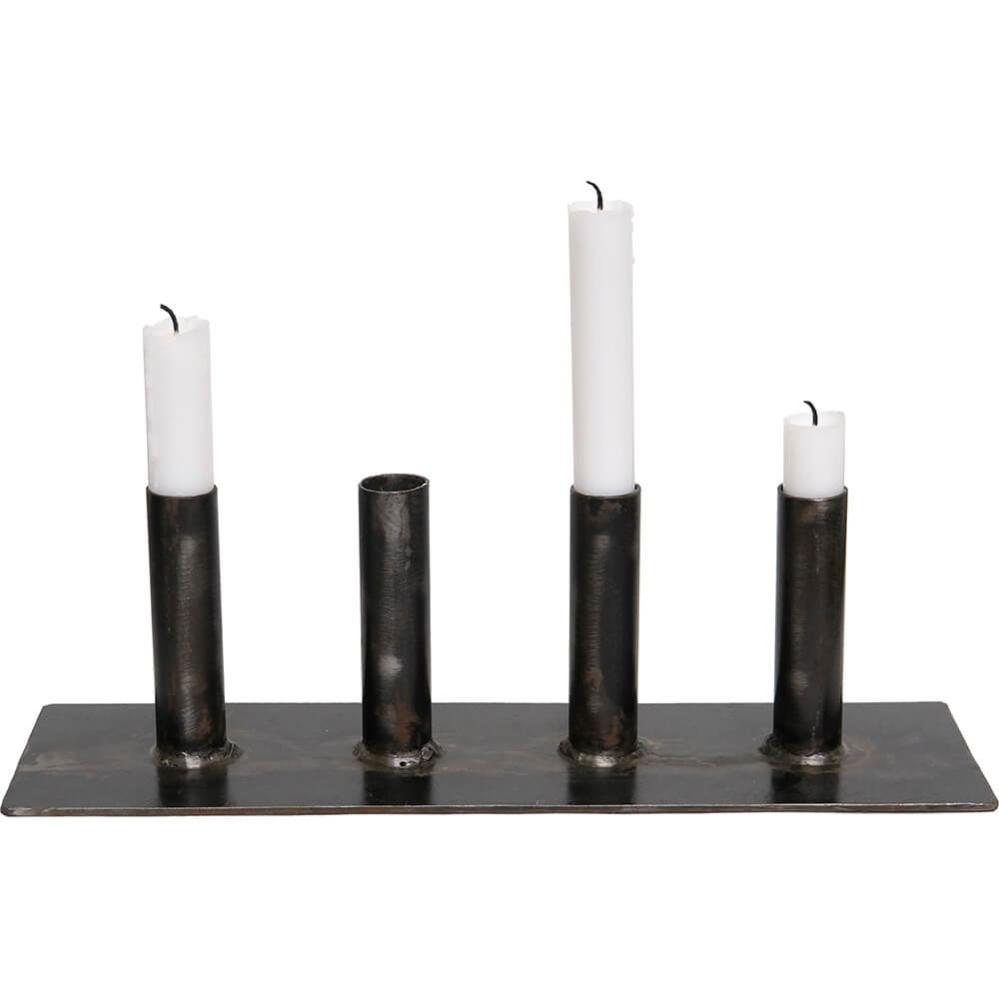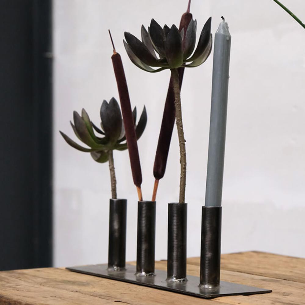 Schöner, stilvoller, niedriger Kerzenständer aus pulverbeschichtetem Eisen, der für vier Kerzen produziert ist. Er kann somit vorteilhaft als Adventskerzen verwendet werden. Alternativ kann der Kerzenhalter auch mit Blumen oder einem Mix aus Kerzen und kleinen Zweige dekoriert werden. Mit einem schlichten und maskulinen Ausdruck eignet sich der Ständer besonders gut in Umgebungen, die vom nordischen Stil geprägt sind.