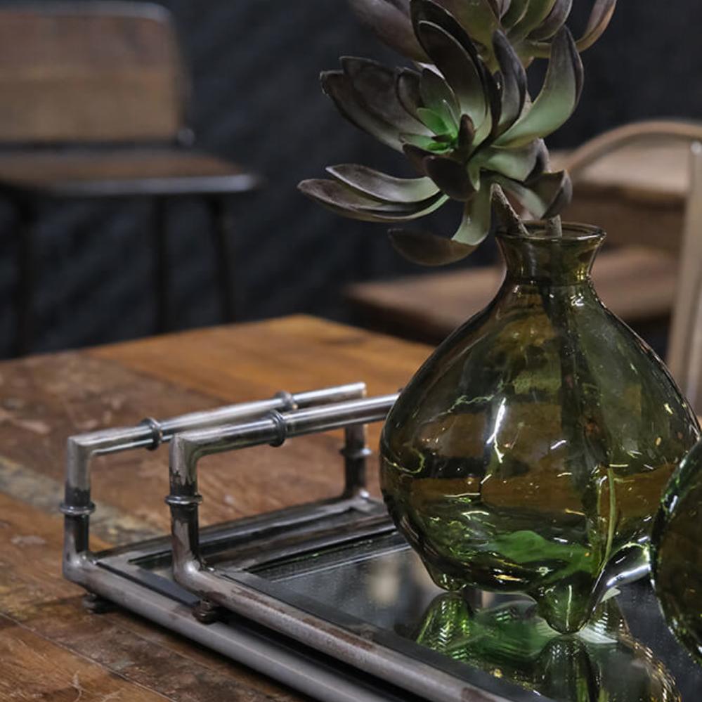 Rustikales Eisentablett mit Spiegelboden, durch den einen exklusiven Look mit einem tollen Effekt entsteht.