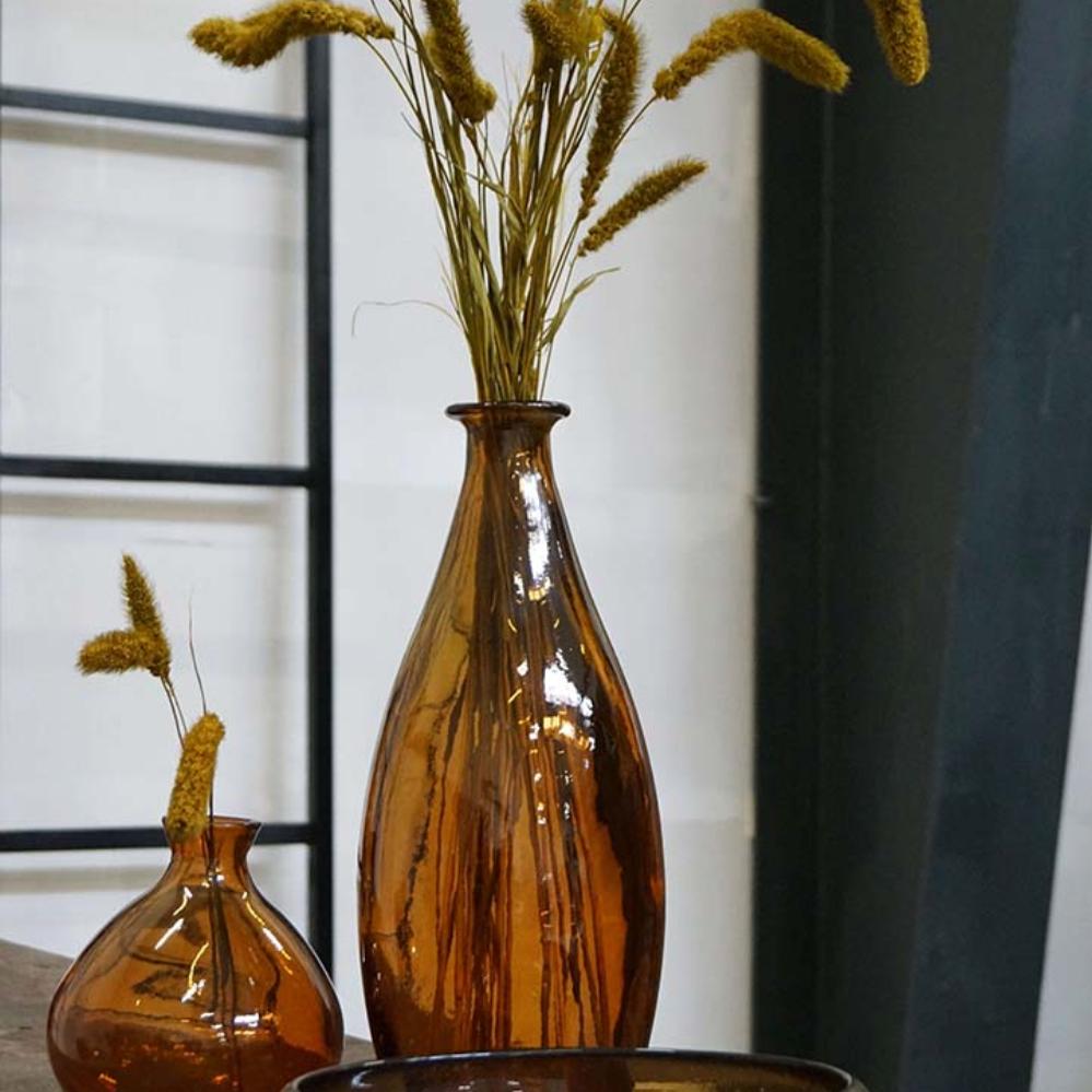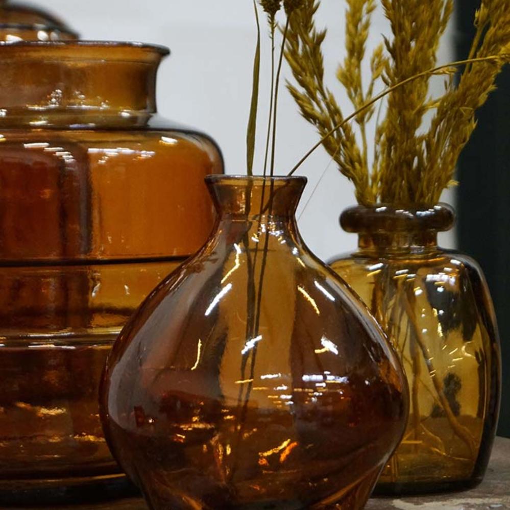 Eine schlichte und schöne Vase in dunler Bernstein mit Balloneffekt aus Recyclingglas. Die Vase ist 18 cm hoch und eignet sich daher besonders gut für kleine Blumen aus dem Garten oder kleine Dekozweige. Sie können diese Vasen problemlos paarweise kombinieren oder zusammen mit anderen schlichten und dekorativen Nippsachen auf dem Tisch stehen lassen. Diese kleine Glasvase ist ein perfektes Geschenk für jemanden, der Ihnen am Herzen liegt, oder einfach als Geschenk für Ihnen.