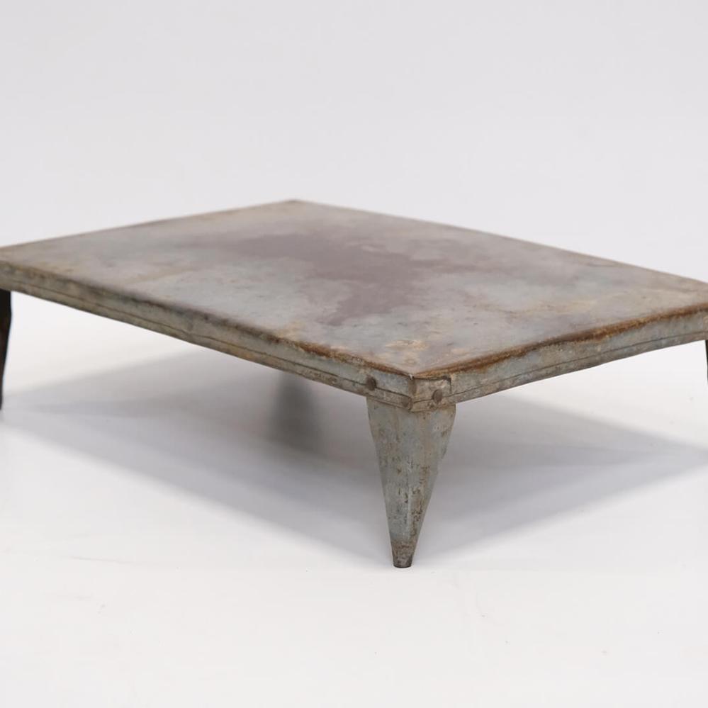 Metalltablett mit roher Patina und kleinen Füßen. Lieben Sie auch Wiederverwendung und Sachen mit einer Geschichte? Mit diesem Metalltablett bekommen Sie beides. Die hübsche Patina des Tabletts entsteht dadurch, dass es als Esstisch und damit als Treffpunkt für eine indische Familie gedient hat.