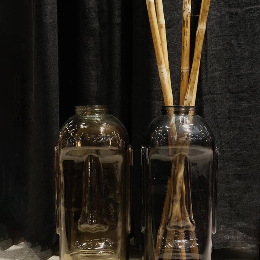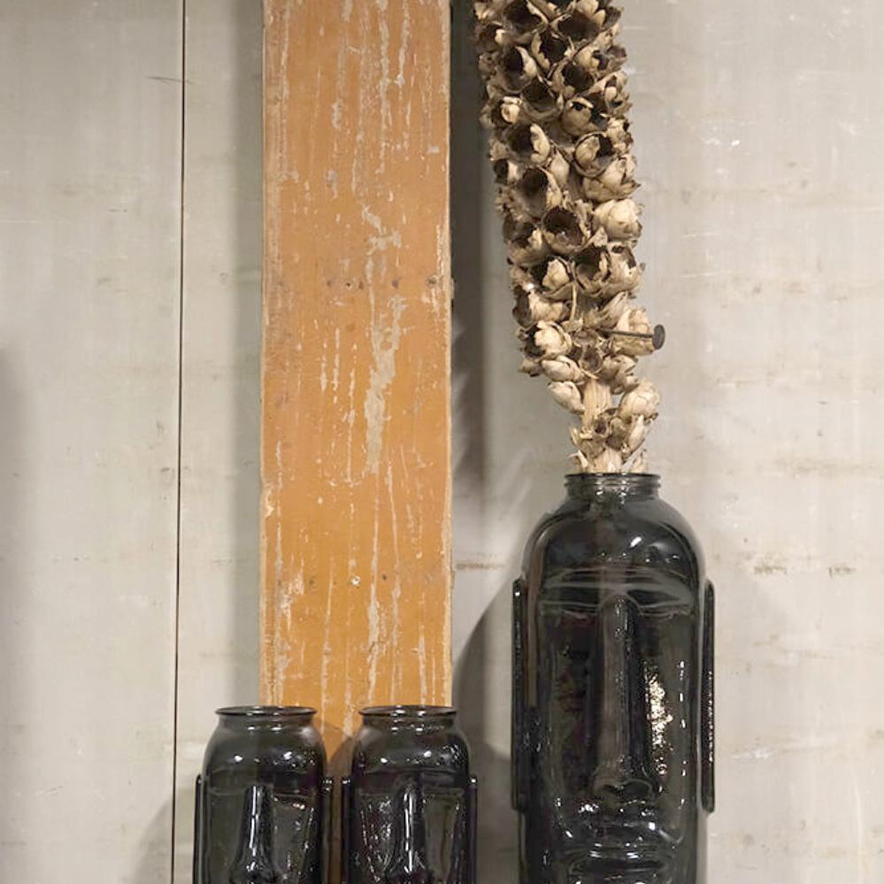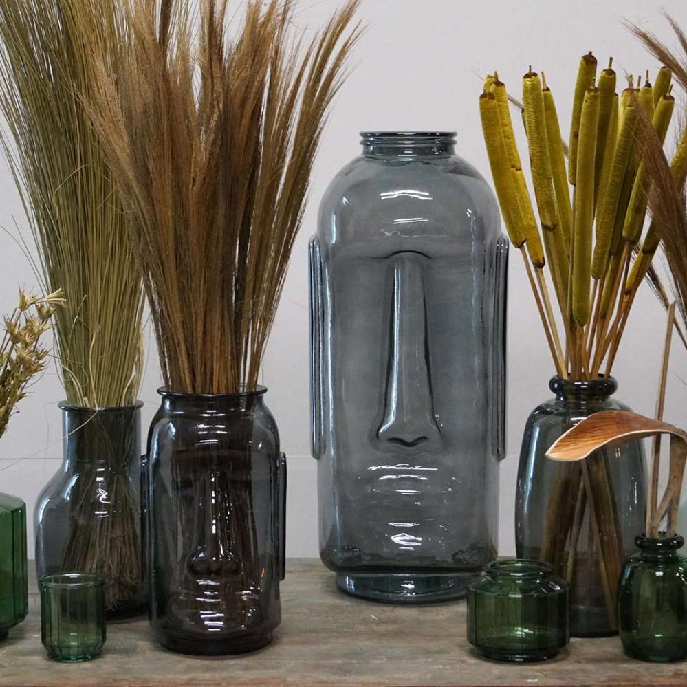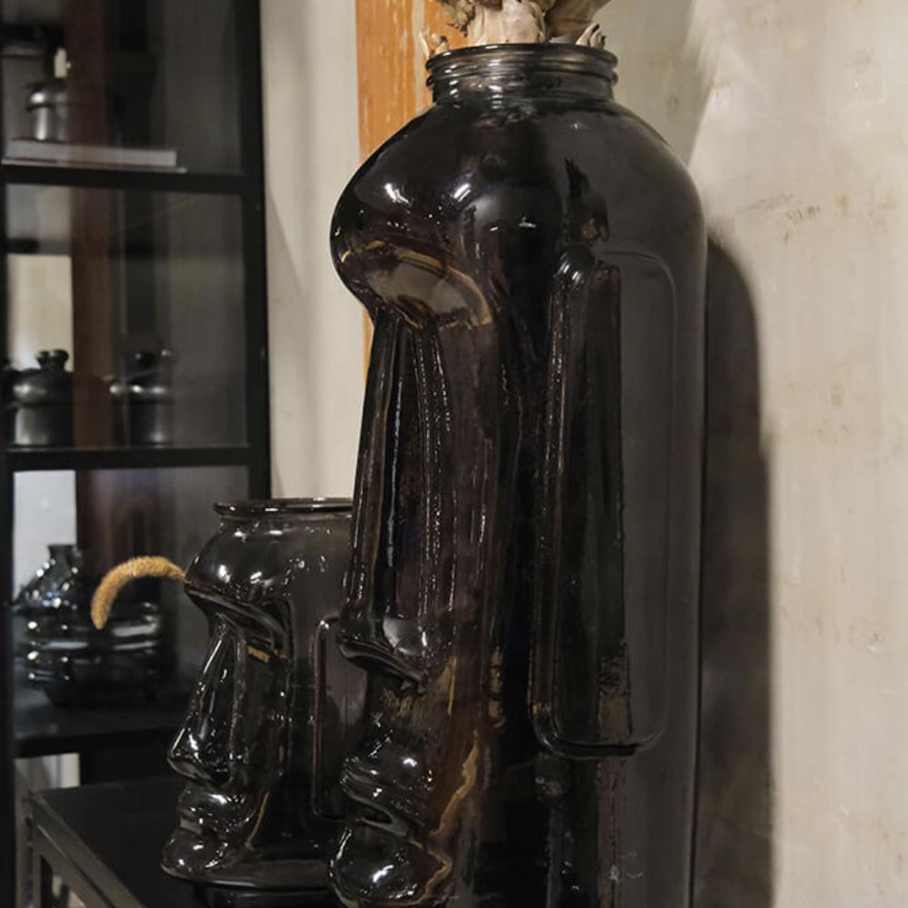 Wunderschöne, große Glasvase mit einem anderen und aufregenden Design in Form eines Gesichts. Die Glasvase ist unglaublich schön, sowohl wenn frische Blumen / Zweige oder ein großes Blocklicht drin sind, aber sie schmückt auch in sich.