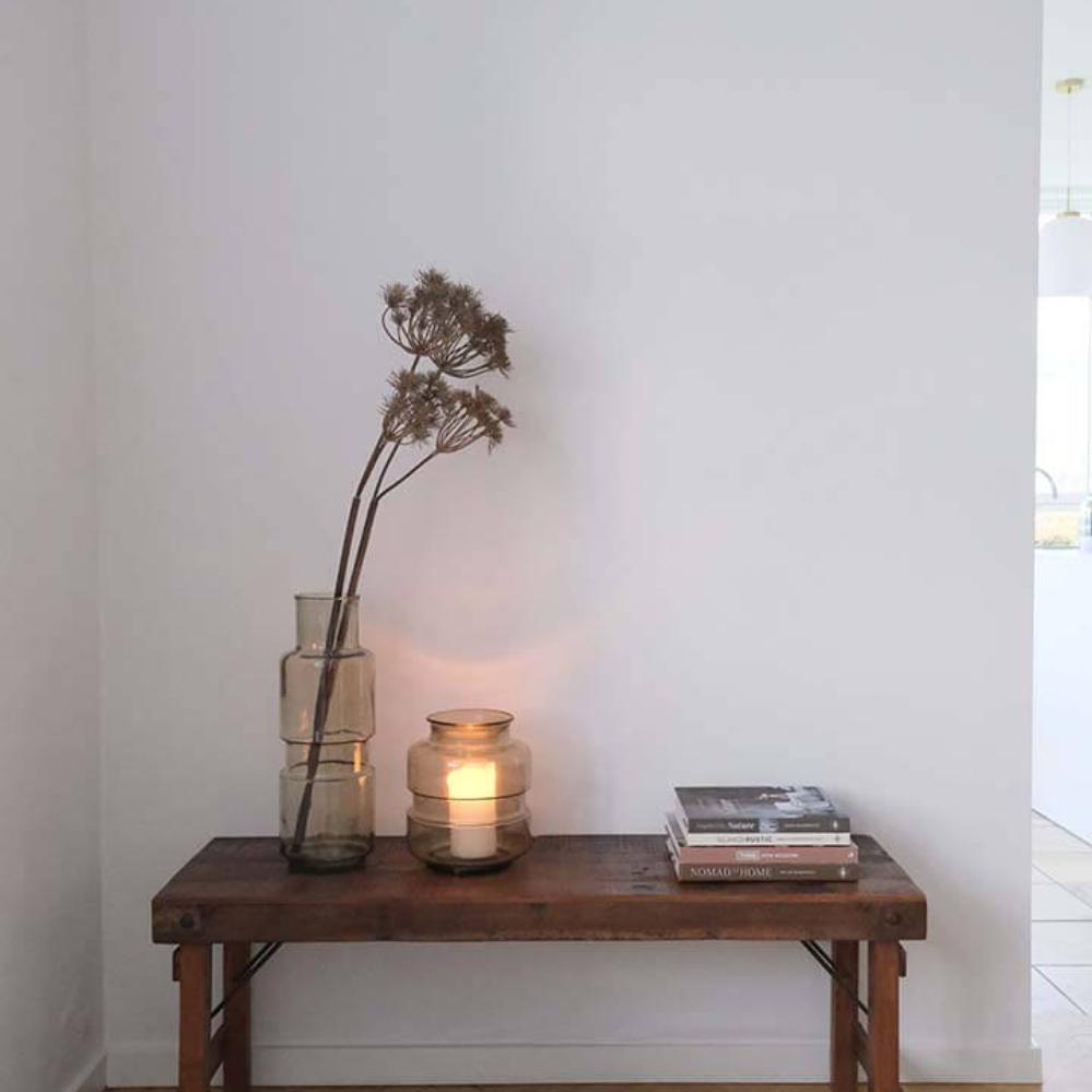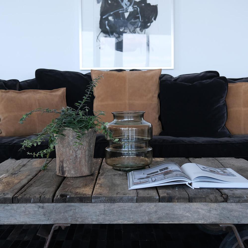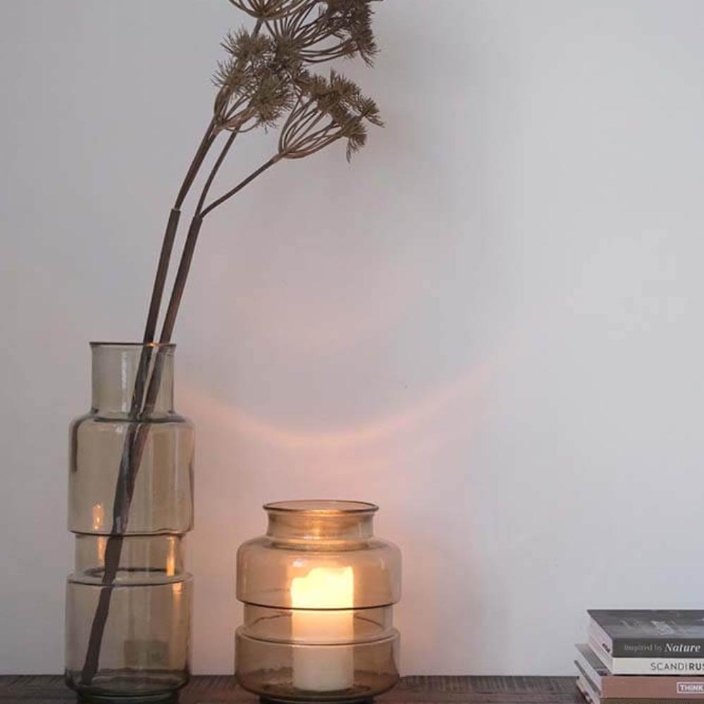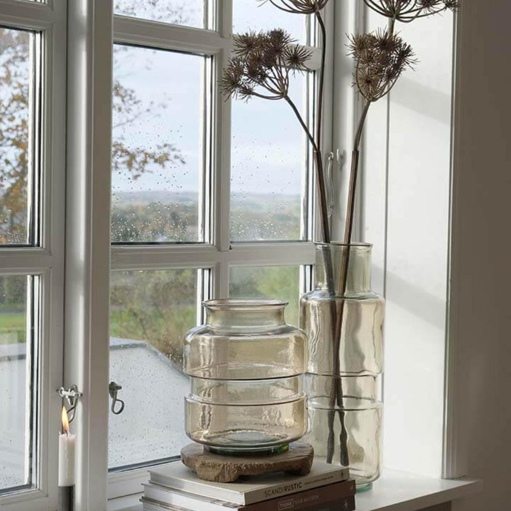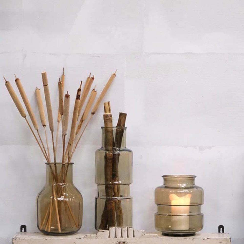 Diese stilvolle, schöne Glasvase ist eine Skulptur für sich und passt perfekt in das moderne Dekor. Die Glasvase ist wunderschön mit Blumen, rustikalen Zweigen oder kann mit anderen Dekorationsgegenständen in verschiedenen Größen, Formen und Farben in einem Stillleben auf den Tisch gestellt werden, wodurch ein persönlicher und lebendiger Look entsteht. Die Vase ist aus recyceltem Glas.