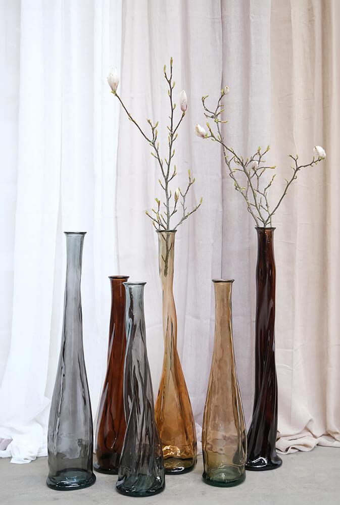 Eine hohe, ausdrucksstarke Schönheit mit ordentlichem Charakter. Die 1 Meter hohe Paltrow Bodenvase in Schokoladenbraun besteht aus recyceltem Glas und beeindruckt mit ihrer gedrehten Silhouette und dem dunklen Farbton. Jede Vase wird teilweise von Hand geformt – Sie bekommen also nicht nur eine Vase, sondern ein echtes handwerkliches Unikat mit kleinen Abweichungen und charmanten Details. Die Drehung im Glas kann daher vom Produktbild abweichen. Diese Vase ist ein echtes Statement-Piece – ob im privaten Zuhause oder im gewerblichen Raum. Setzen Sie sie als skulpturales Highlight in einer Hotellounge, in der Ecke eines Restaurants oder im Showroom in Szene – oder kombinieren Sie sie mit anderen Vasen aus der Paltrow-Serie für einen echten Wow-Effekt (einfach nach „Paltrow“ im Shop suchen). Auch mit ein paar getrockneten Zweigen oder langen Pampasgräsern macht sie richtig was her. Bitte zur Kenntnis nehmen: Da die Vasen teilweise von Hand gedreht werden, wird es Unterschiede in der Verdrehung des Glases geben, sodass die Vase von den Bildern abweichen kann.