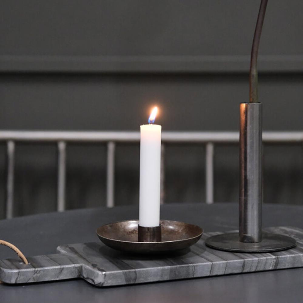 Hübscher und schlichter, kleiner Kerzenhalter aus Metall. Mit seinem runden Design schafft er eine gemütliche Atmosphäre in jedem Raum. Er ist speziell für eine Stabkerze konzipiert und spendet ein schönes und beruhigendes Licht. Stellen Sie ihn auf Ihren Esstisch, auf das Fensterbrett oder überall dort, wo Sie eine stimmungsvolle Beleuchtung wünschen. Verwenden Sie ihn alleine oder platzieren Sie gerne mehrere in Gruppen.
