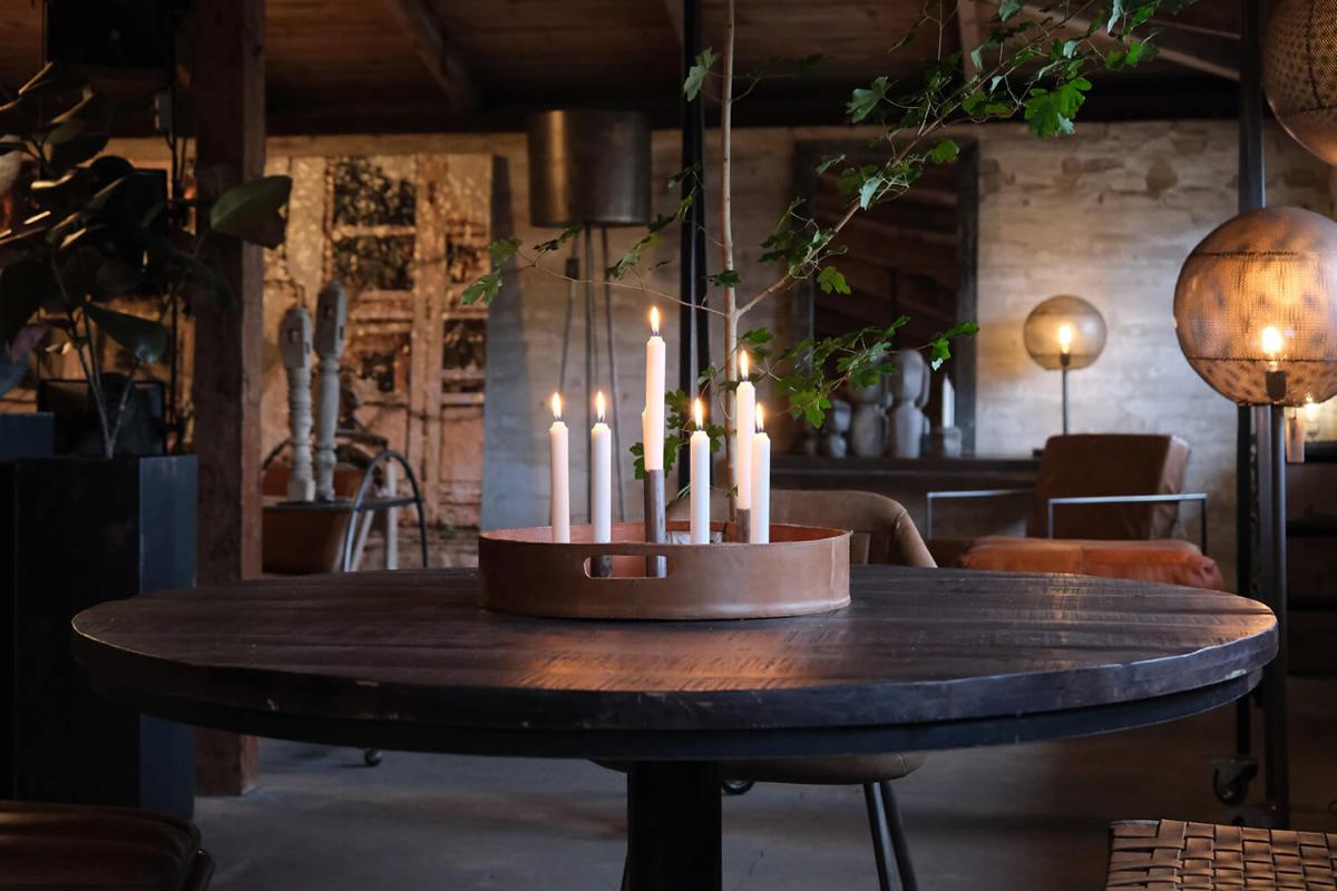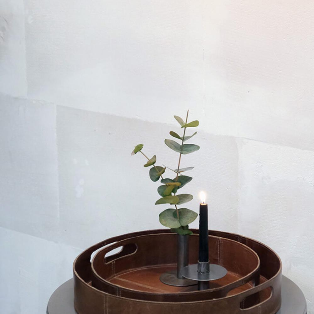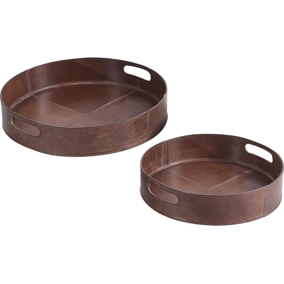 Unglaublich schönes rundes Tablett-Set aus Leder. Die Serviertabletts haben einen hohen Rand und zwei Griffe. Kann auch als dekoratives Tablett für verschiedene Nippes oder andere Sachen verwendet werden, die Sie präsentieren möchten. 2er Set: D 44 cm + D 36 cm.