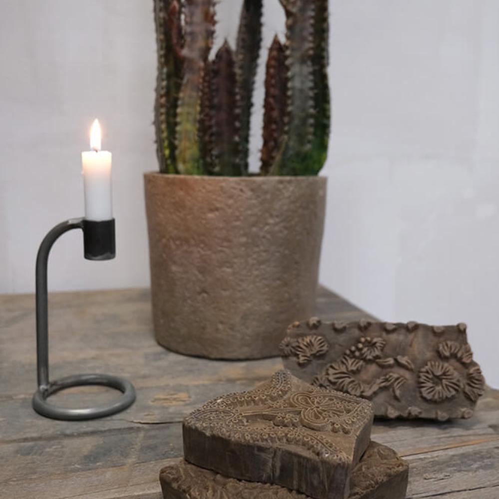 Rustikaler Kerzenständer aus Eisen. Für die persönliche Einrichtung mit 1 Stabkerzen geeignet. Höhe 16cm.
