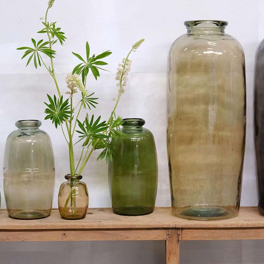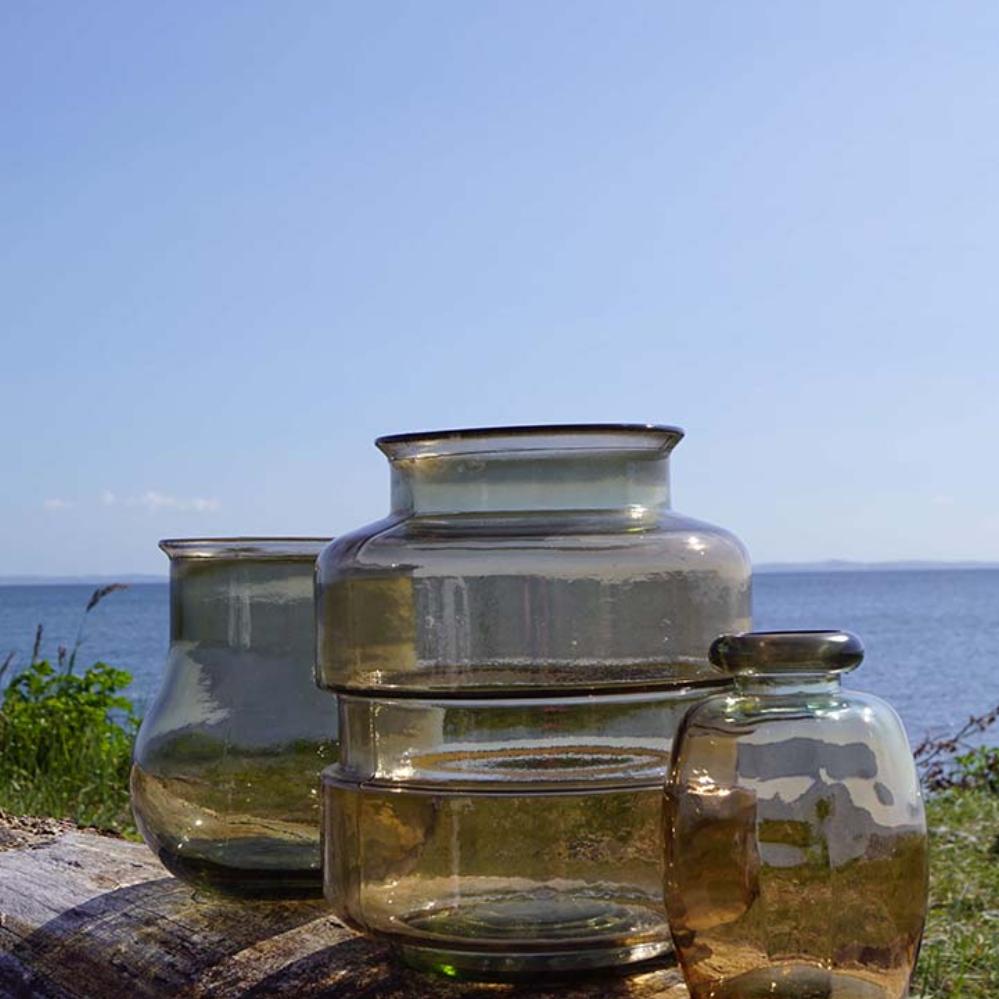 Wunderschöne rauchfarbig Glasvase aus recyceltem Glas für alles von duftenden Lieblingsblumen bis hin zu dekorativen Zweigen. Sie können die Vase ganz einfach allein stellen oder als rohen Kerzenständer als dekoratives Element in Ihrem Zuhause verwenden. Oder kombinieren Sie diese Vase mit mehreren Vasen im gleichen Farbton, mit getrockneten oder lebenden Blumen.