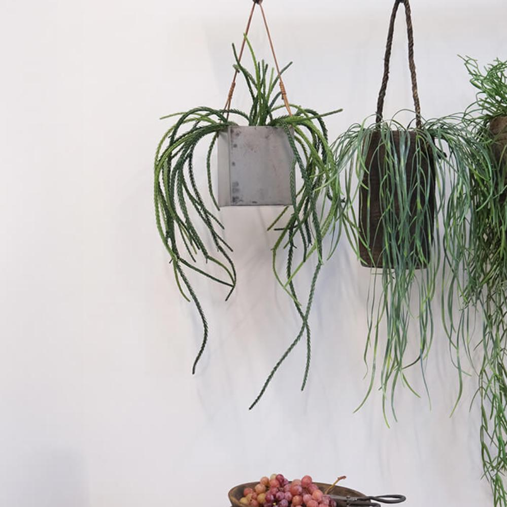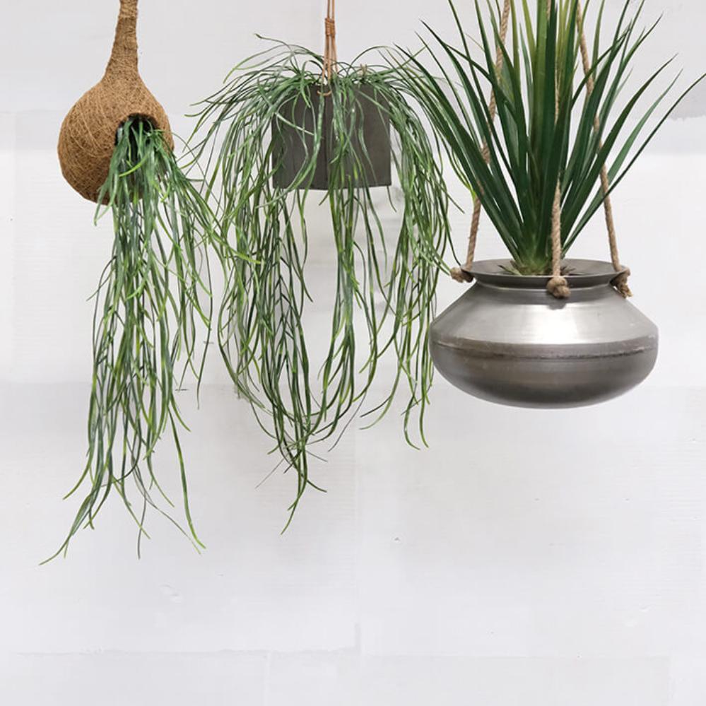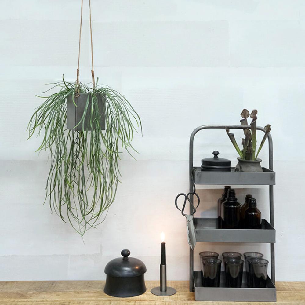 Rustikaler Eisentopf mit Lederband. Geben Sie mit hängenden Pflanzen Ihrem Dekor ein neues Leben, das wie nie zuvor modern ist. Sie können damit ein einzigartiges Aussehen und eine botanische Atmosphäre im Innen- und Außenbereich. Genießen Sie Ihre Lieblingspflanzen überall und jederzeit.
