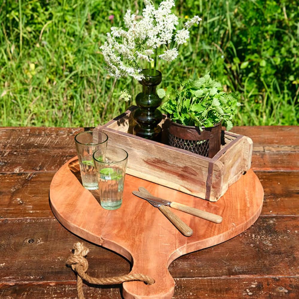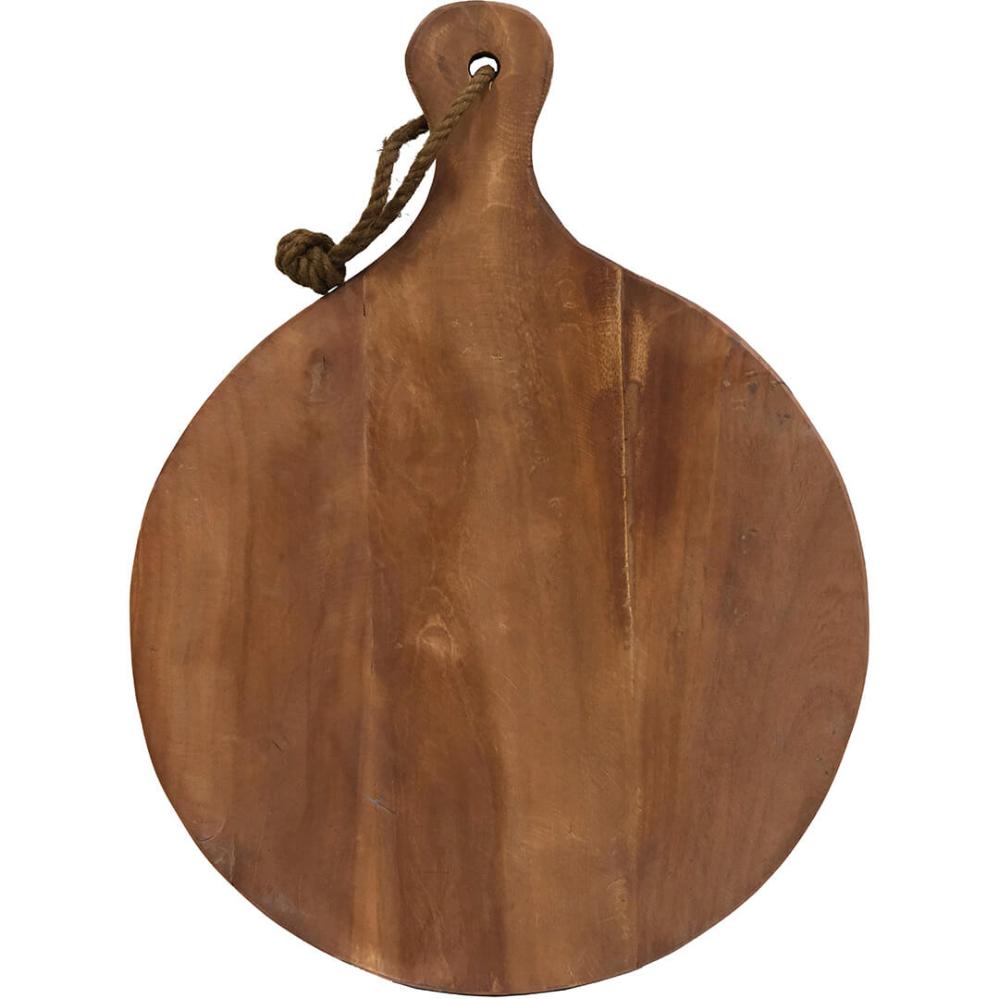 Rustikales, rundes Holzschneidebrett. Dieses schöne Schneidebrett bietet nicht nur viel Platz, sondern auch eine solide Grundlage für den Start in der Küche. Das rohe Holz, aus dem das Schneidebrett gefertigt ist, macht es auch ideal, um leckere Tapas, frisch geschnittenes Obst oder vielleicht eine kleine Pizza zuzubereiten. Reinigen Sie es mit Seife und Wasser und Sie verlängern die Haltbarkeit, wenn Sie das Brett mit Pflanzenöl schmieren. Nicht für Spülmaschinen geeignet.