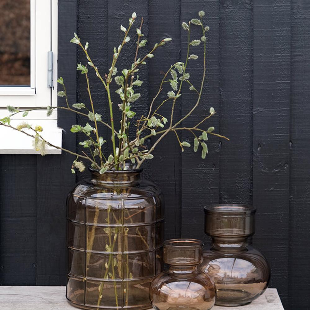 Diese Vase aus recyceltem Glas wurde mit einem zeitlosen Design geschaffen, das perfekt zu jeder Einrichtung passt. Die rauchfarbige Glasoberfläche lässt das Licht hindurchscheinen und erzeugt einen fantastischen Effekt, wenn die Sonne darauf scheint. Ob Sie Ihr Esszimmer, Wohnzimmer oder Schlafzimmer dekorieren möchten, diese Vase ist eine stilvolle Wahl.