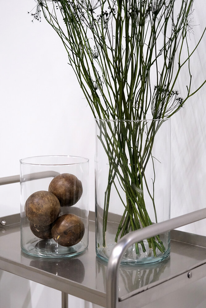 Diese schöne Zylinderglasvase ist ein stilvolles und vielseitiges Element für Ihr Zuhause. Mit ihrem schlichten, geradlinigen Design hebt die Vase den Inhalt auf natürliche und elegante Weise hervor egal, ob Sie sie mit Blumen, Zweigen, Stumpenkerzen oder saisonaler Dekoration füllen. Sie passt sowohl in moderne als auch in klassische und rustikale Umgebungen. Die Vase eignet sich perfekt für kreative Arrangements, zum Beispiel als Windlicht mit einer Stumpenkerze, umgeben von Zapfen, Moos oder kleinen Dekoelementen, um eine warme und gemütliche Atmosphäre zu schaffen. Sie ist auch ideal für getrocknete Naturmaterialien, Zweige oder als dekoratives Gefäß im Eingangsbereich, auf dem Esstisch oder auf der Fensterbank. Außerdem kann sie als praktischer Einsatz in Ihrer Lieblingstonvase verwendet werden, wenn diese nicht wasserdicht ist. Die Glasvase ist in mehreren Größen erhältlich, damit Sie durch das Kombinieren mehrerer Vasen nebeneinander ein harmonisches Gesamtbild schaffen können.
