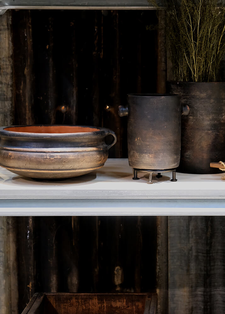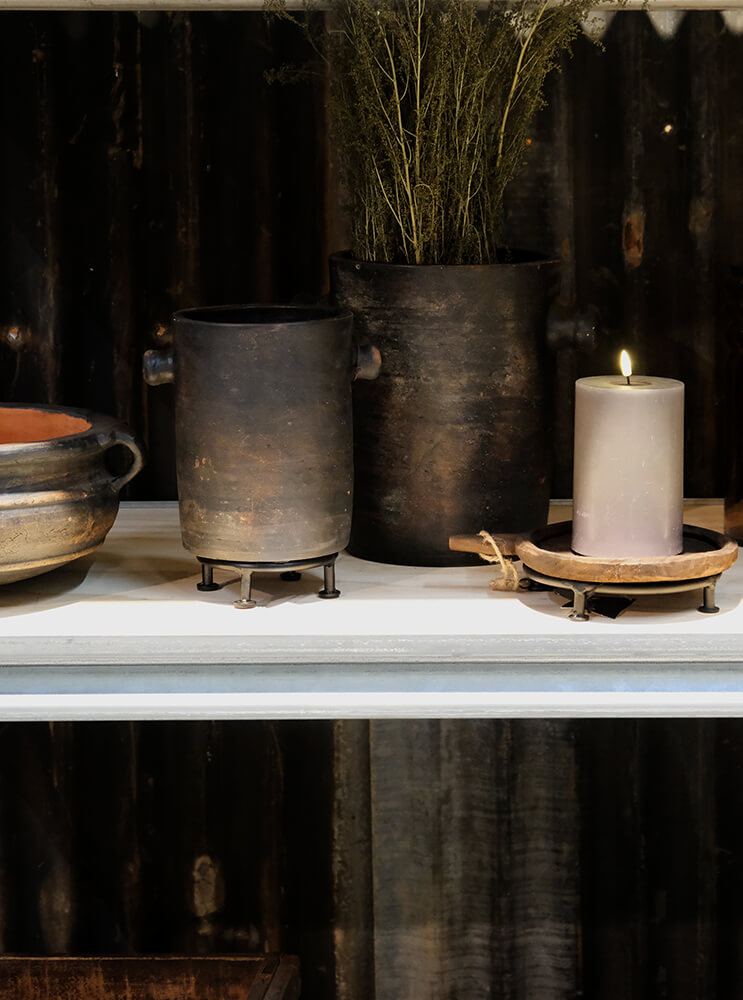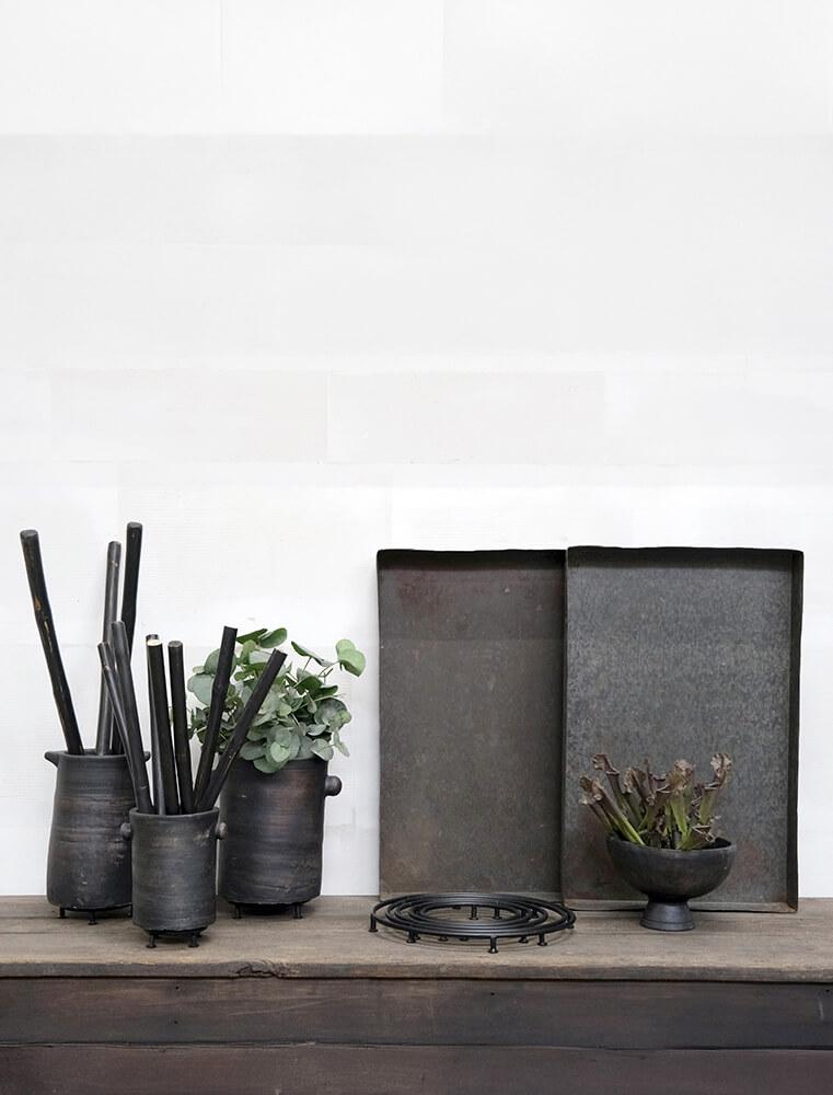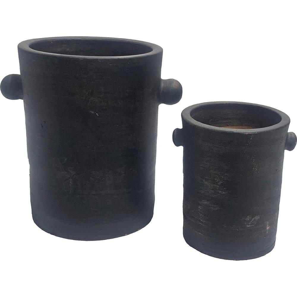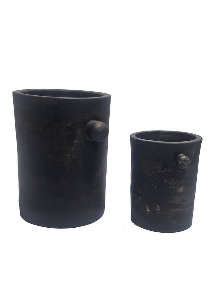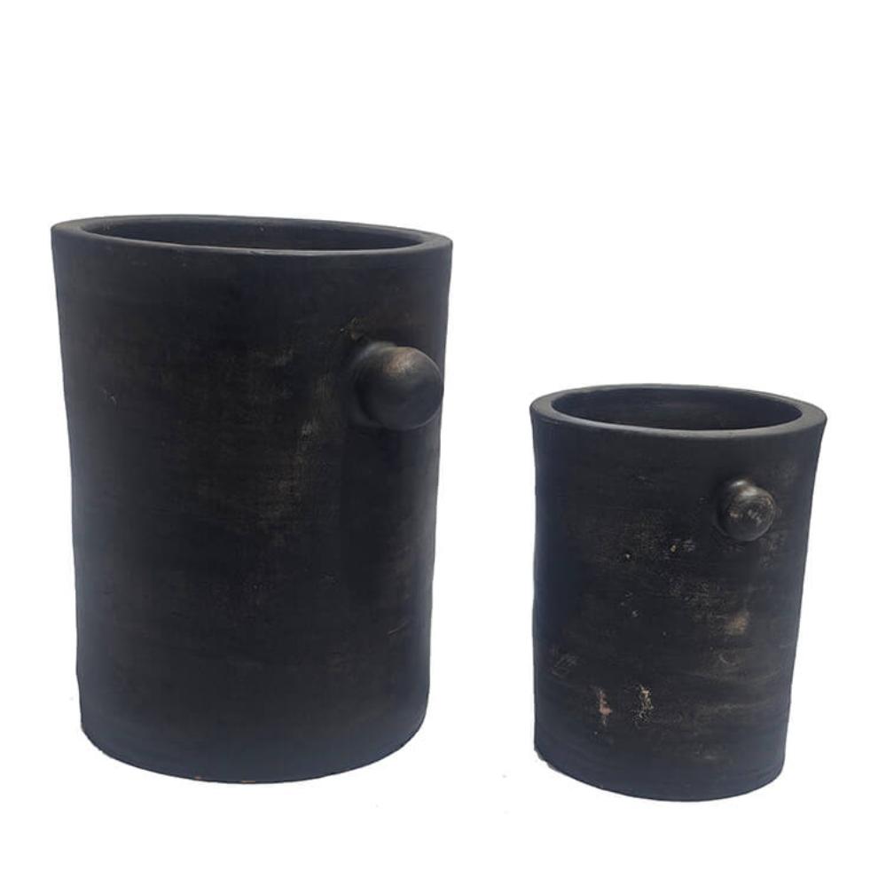 Dieses einfache Tontopf-Set ist in einem rustikalen Design mit einer dunklen Oberfläche gefertigt, das den Töpfen einen organischen und maskulinen Ausdruck verleiht. Die schlanke Form mit den charakteristischen kleinen Griffen an den Seiten verleiht dem klassischen Topfdesign das gewisse Extra. Perfekt als Pflanzgefäße oder als dekorative Elemente im Wohnzimmer, in der Küche oder im Flur. Sie können zusammen aufgestellt werden, um ein harmonisches Erscheinungsbild zu schaffen, oder einzeln als Blickfang verwendet werden. Egal, wo die Töpfe platziert werden, sie fügen Ihrer Einrichtung eine raue und authentische Atmosphäre hinzu. Wenn Sie die Töpfe für Pflanzen verwenden, empfehlen wir, einen Kunstostoffeinsatz zu benutzen, da die Töpfe nicht wasserdicht sind. Der kleine Topf misst: H:21 x W:20 x D:17 cm
