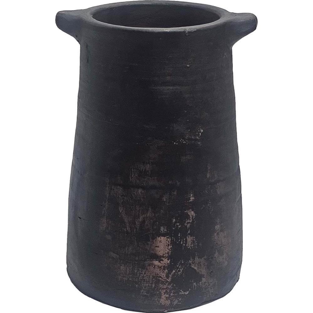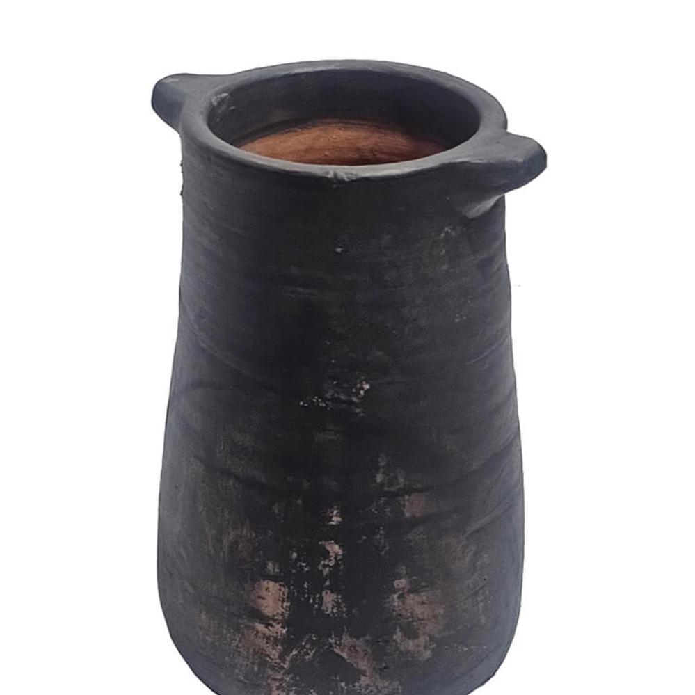 Dieser rustikale Tontopf hat eine markante dunkle Oberfläche, die seinen rauen und natürlichen Look betont. Mit seiner einfachen Form und den kleinen Griffen an den Seiten hat der Topf ein schlichtes Design, aber viel Charakter. Die abgenutzte Oberfläche verleiht dem Topf eine authentische, handgefertigte Note, die sowohl in moderne als auch in rustikale Einrichtungen passt. Verwenden Sie ihn als Pflanzgefäß oder lassen Sie ihn als dekoratives Element allein stehen, sei es zu Hause, auf der Terrasse oder in Ihrem Restaurant. Denken Sie nur daran, dass der Topf nicht wasserdicht ist. Um Flecken zu vermeiden, benutzen Sie innen Plastik.