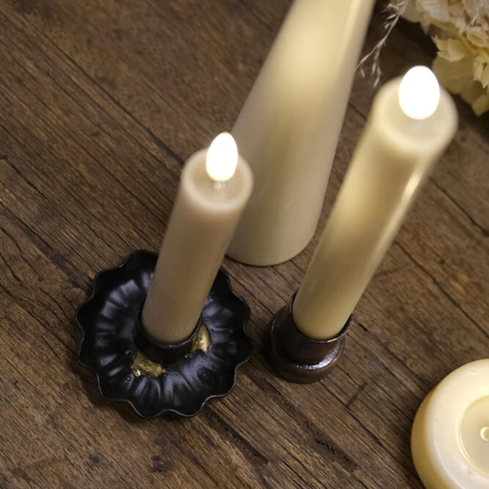 Roher Kerzenhalter aus Eisen mit einem sehr einfachen Design. Die Kerzenhalter sind teilweise handgefertigt und haben daher jeweils ihre eigene einzigartige Optik. Sie können den Kerzenhalter gerne zusammen mit anderen Kerzenhaltern in einer Gruppe von 3, 5 oder 7 verwenden oder ein paar der kleinen feinen Kerzenhalter zusammen mit einer Vase, Figur oder Pflanze platzieren, um ein schönes Stillleben zu schaffen. Verwenden Sie Kronenkerzen für den Kerzenhalter.